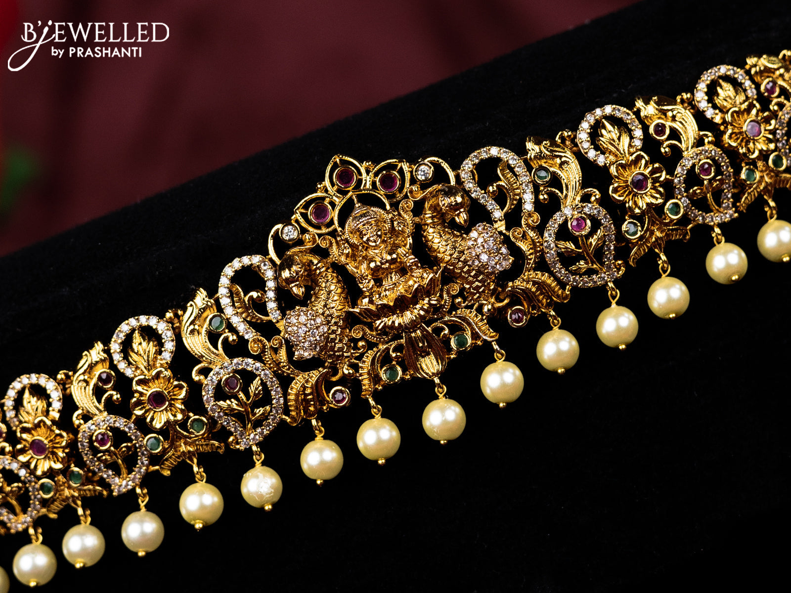 Antique hip belt lakshmi design with kemp & cz stones and pearl hangings