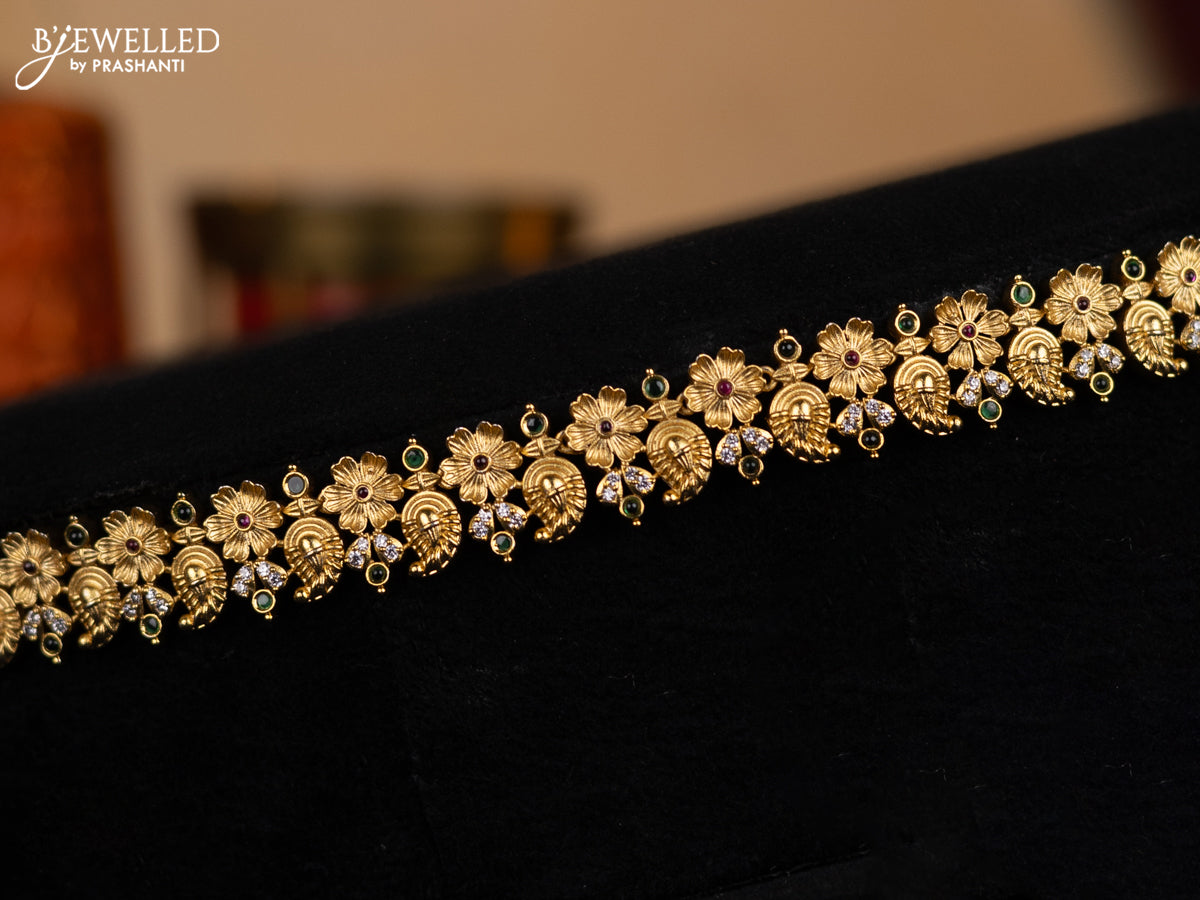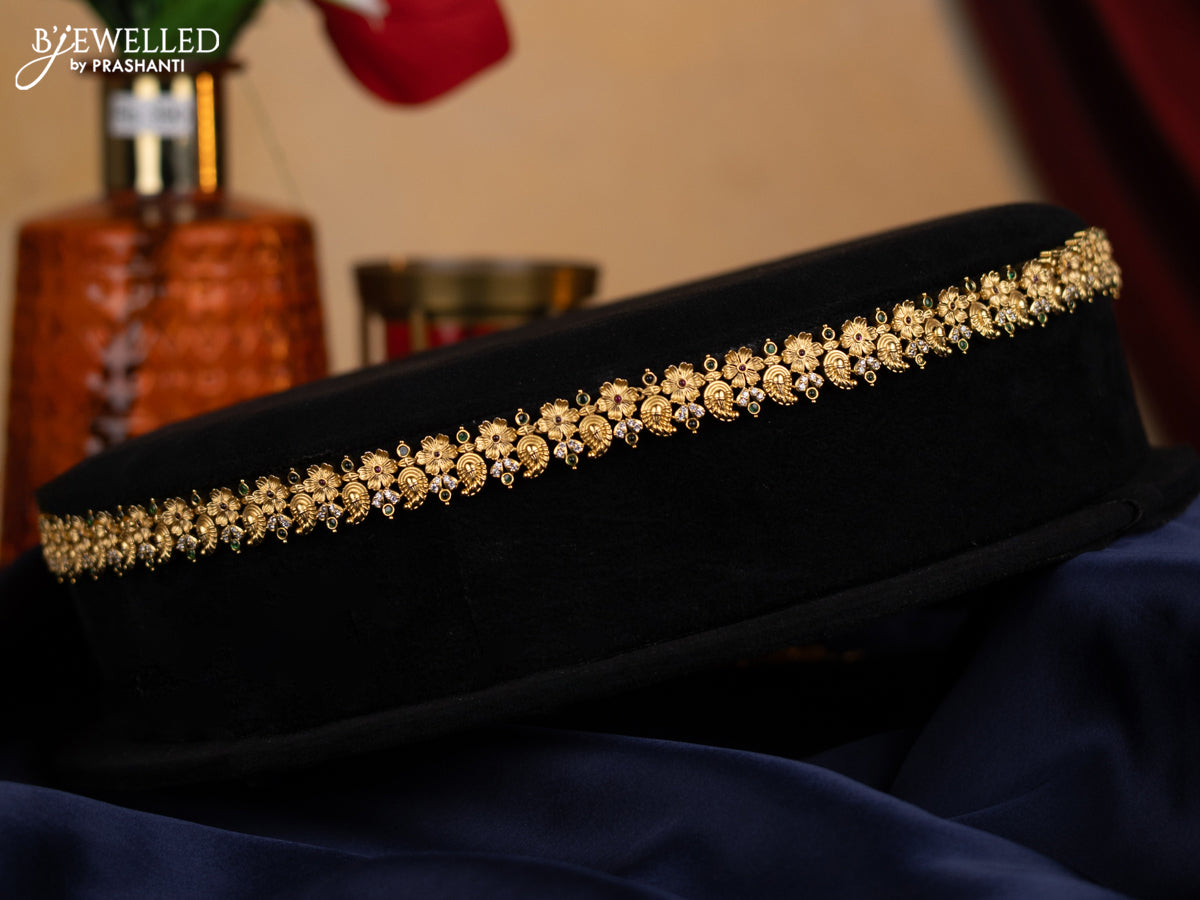 Antique hip chain floral design with kemp and cz stone