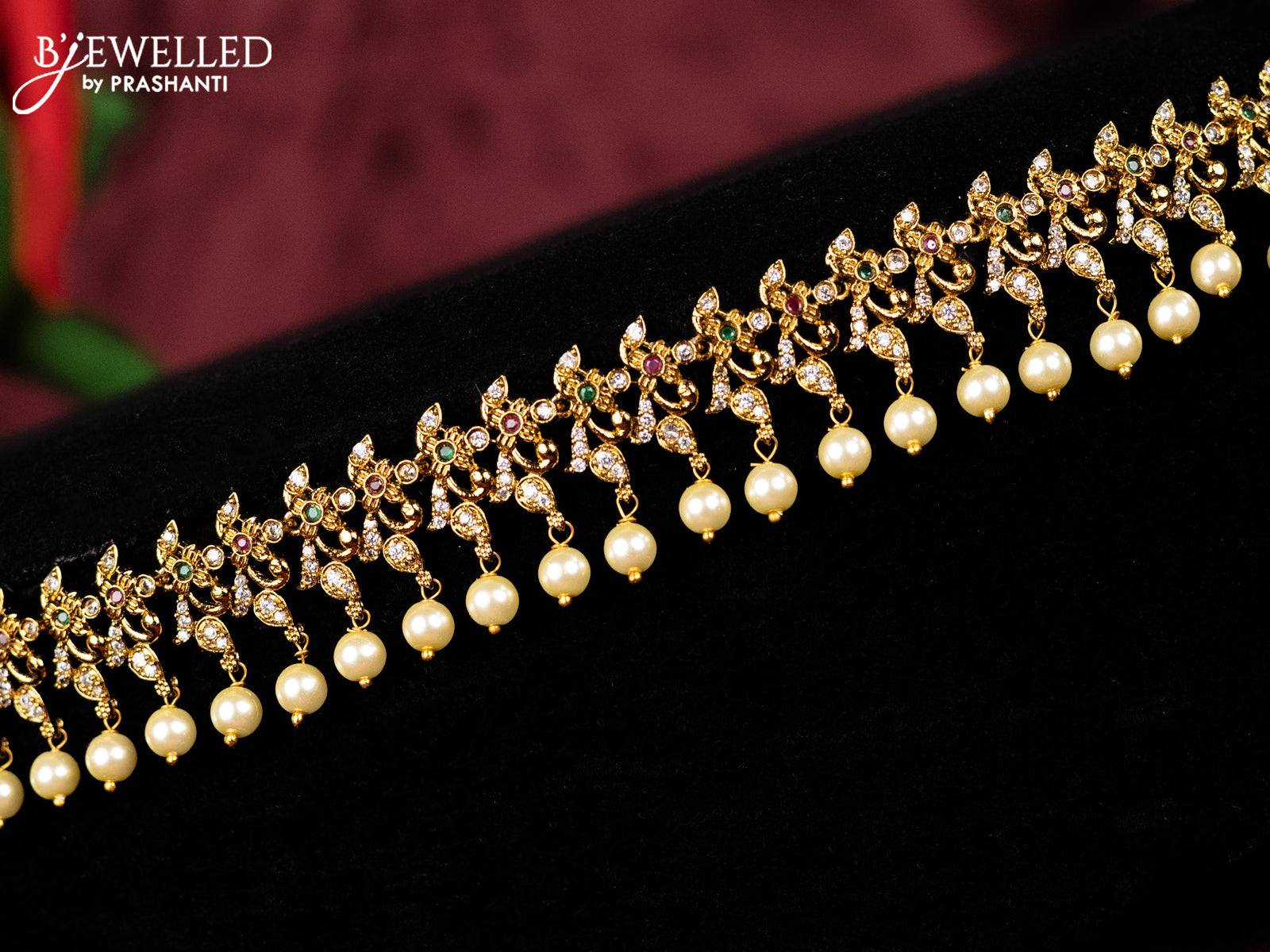 Antique hip chain with kemp & cz stones and pearl hangings