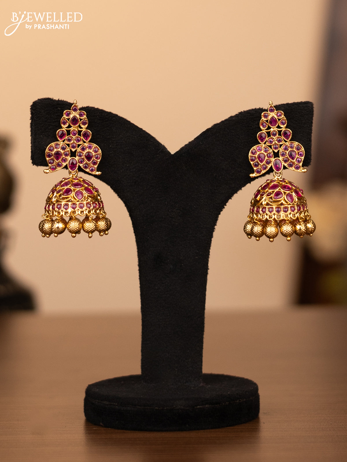 Antique necklace manga pattern with pink kemp stones and golden beads hanging