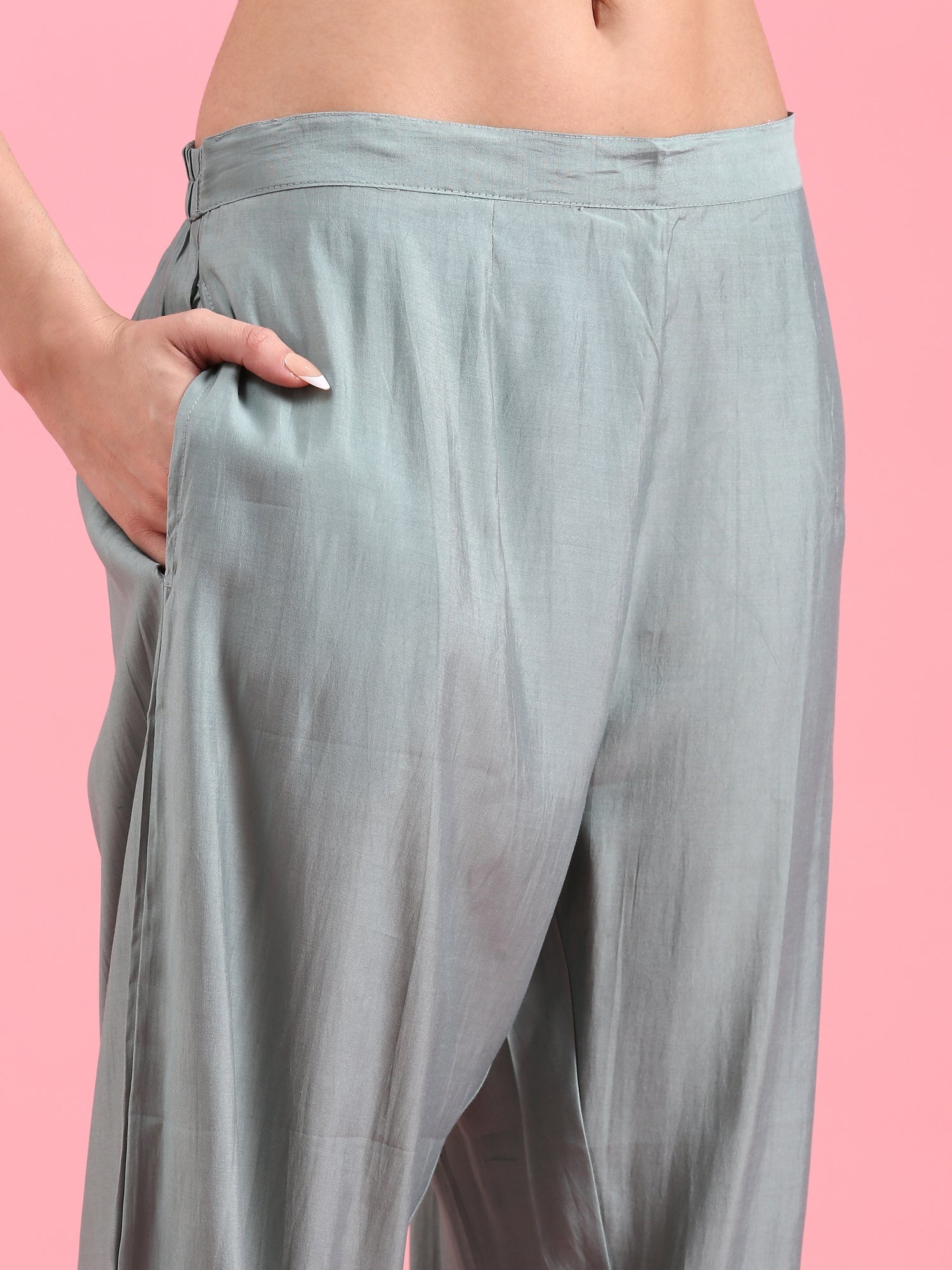 Aqua Modal Silk Embroidery Three Piece Suit Set