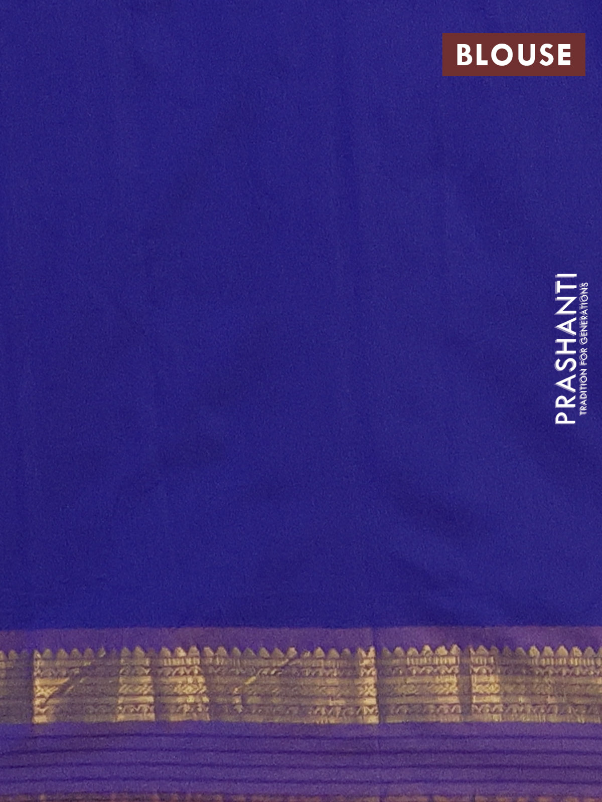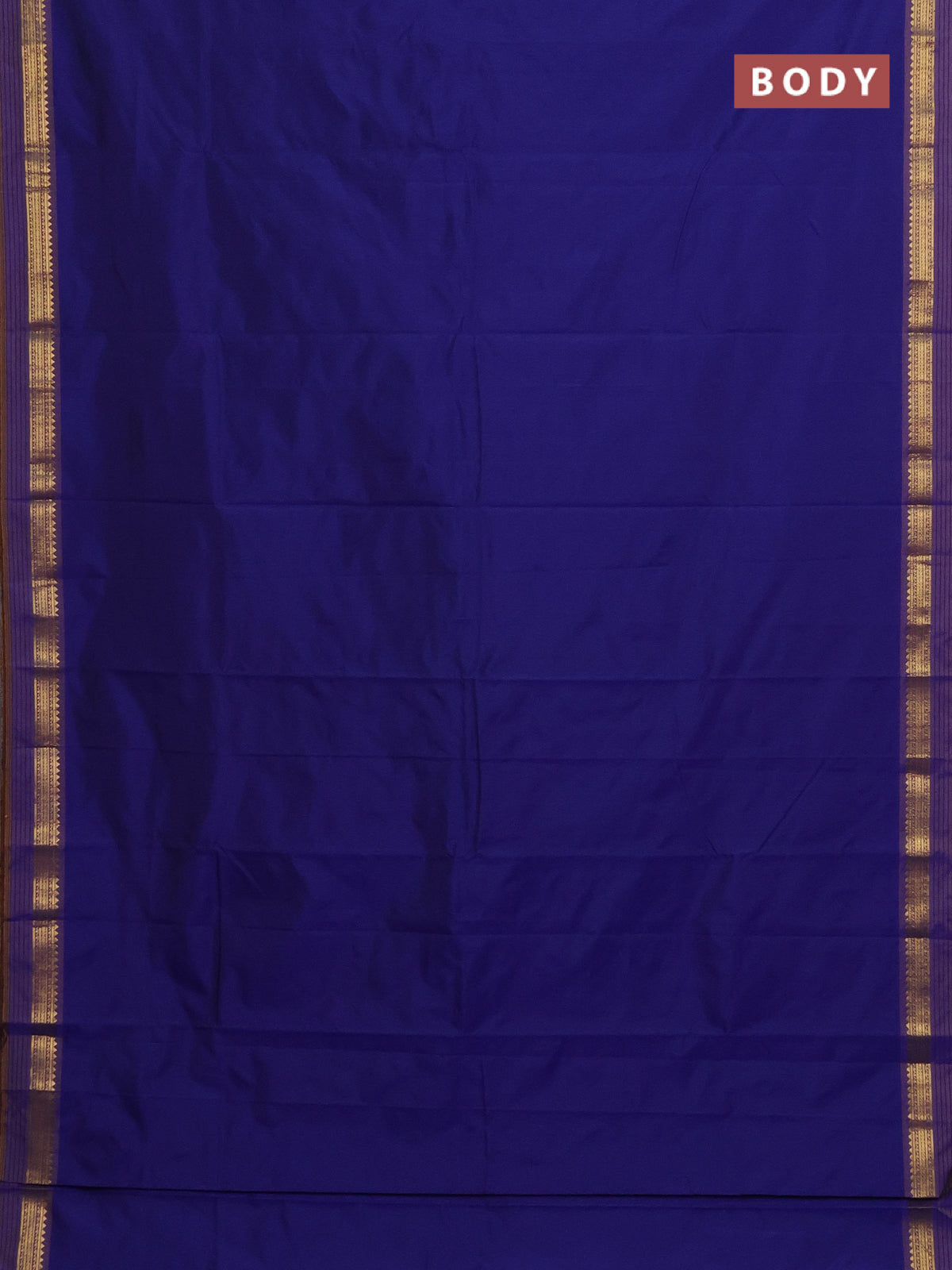 Arani semi silk saree blue and dark mustard with plain body and zari woven simple border