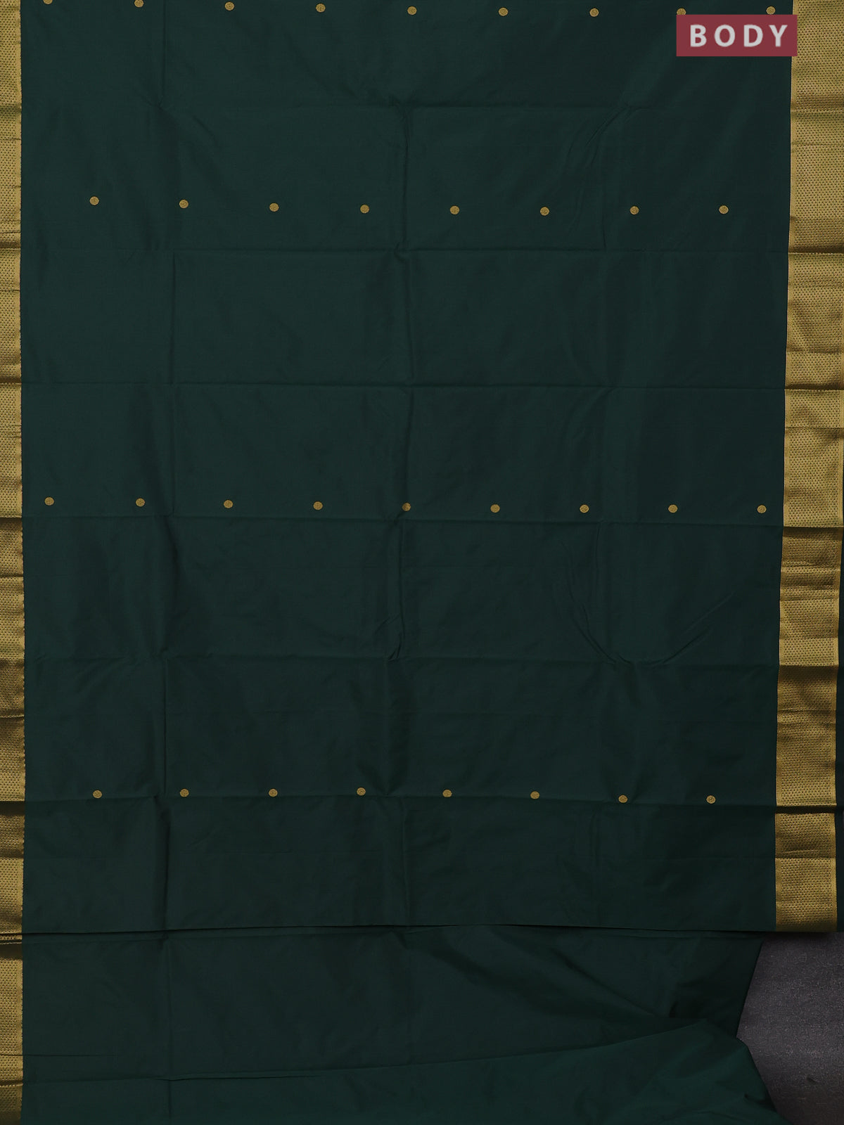 Arani semi silk saree bottle green with zari woven buttas and zari woven border