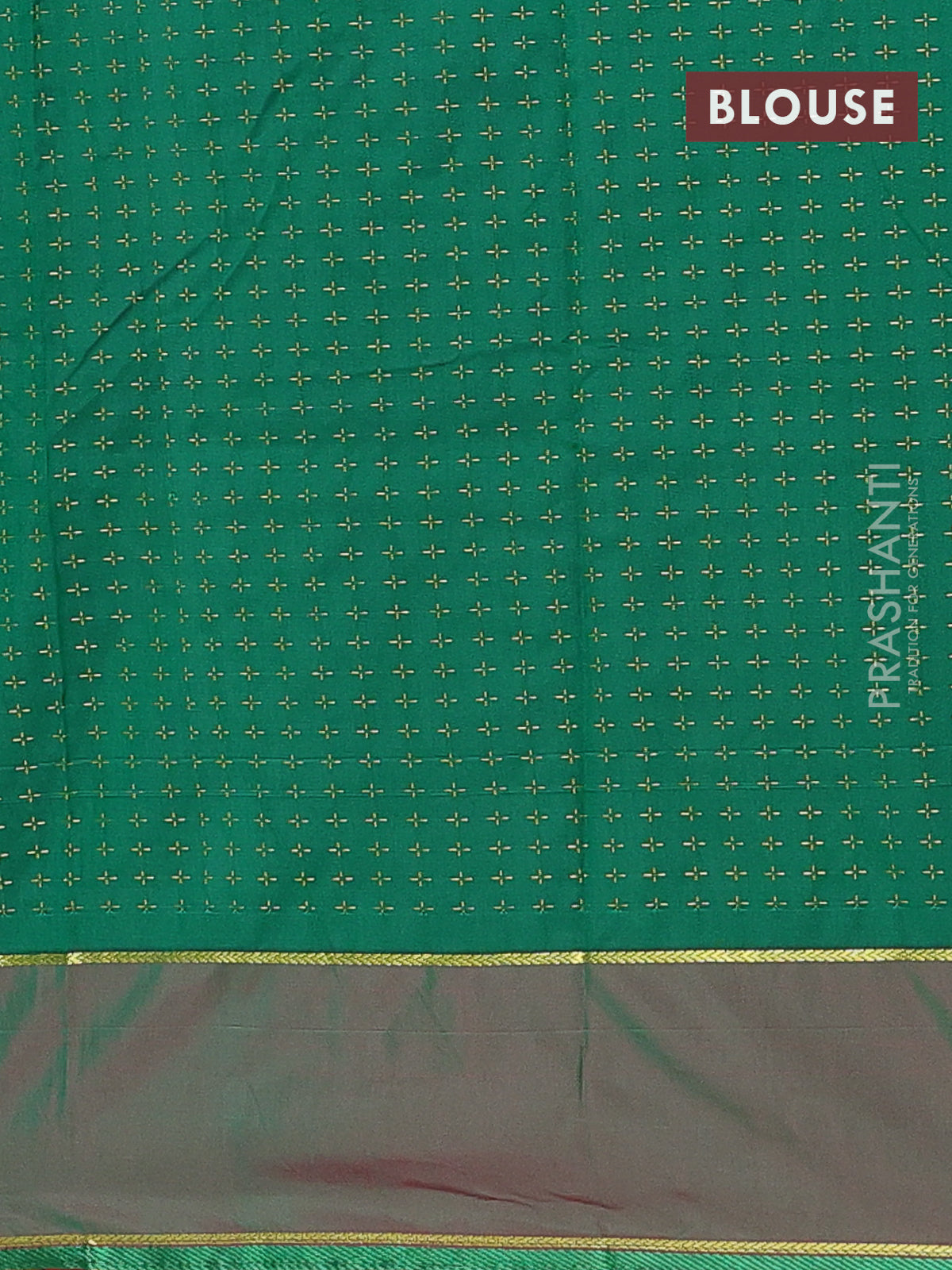 Arani semi silk saree brown shade and green with allover thread weaves and rettapet zari woven border`