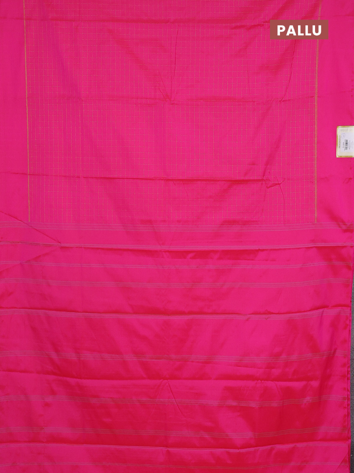 Arani semi silk saree candy pink with allover zari checked pattern and zari woven simple border