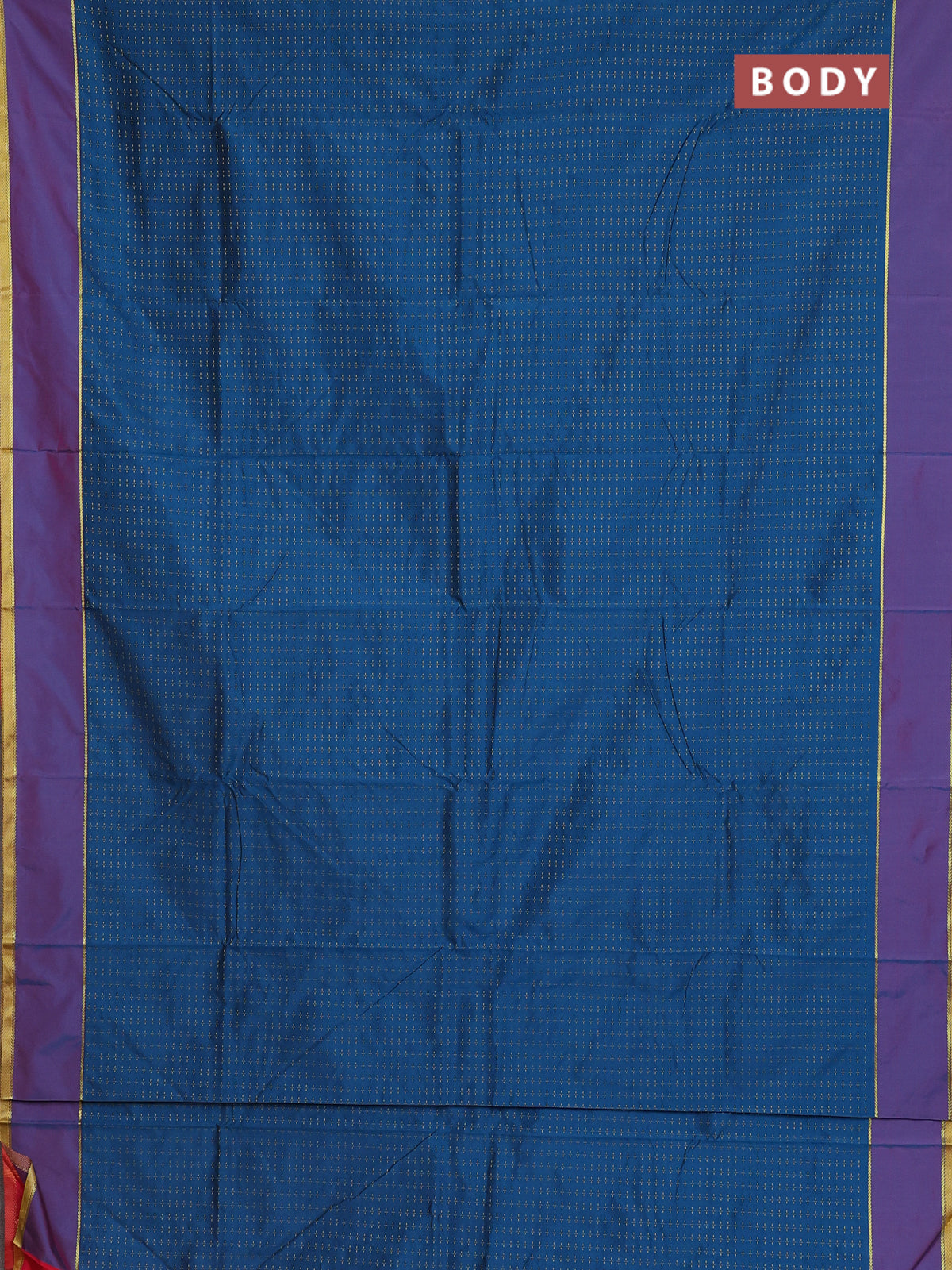 Arani semi silk saree cs blue and reddish pink with allover thread weaves and rettapet zari woven border`
