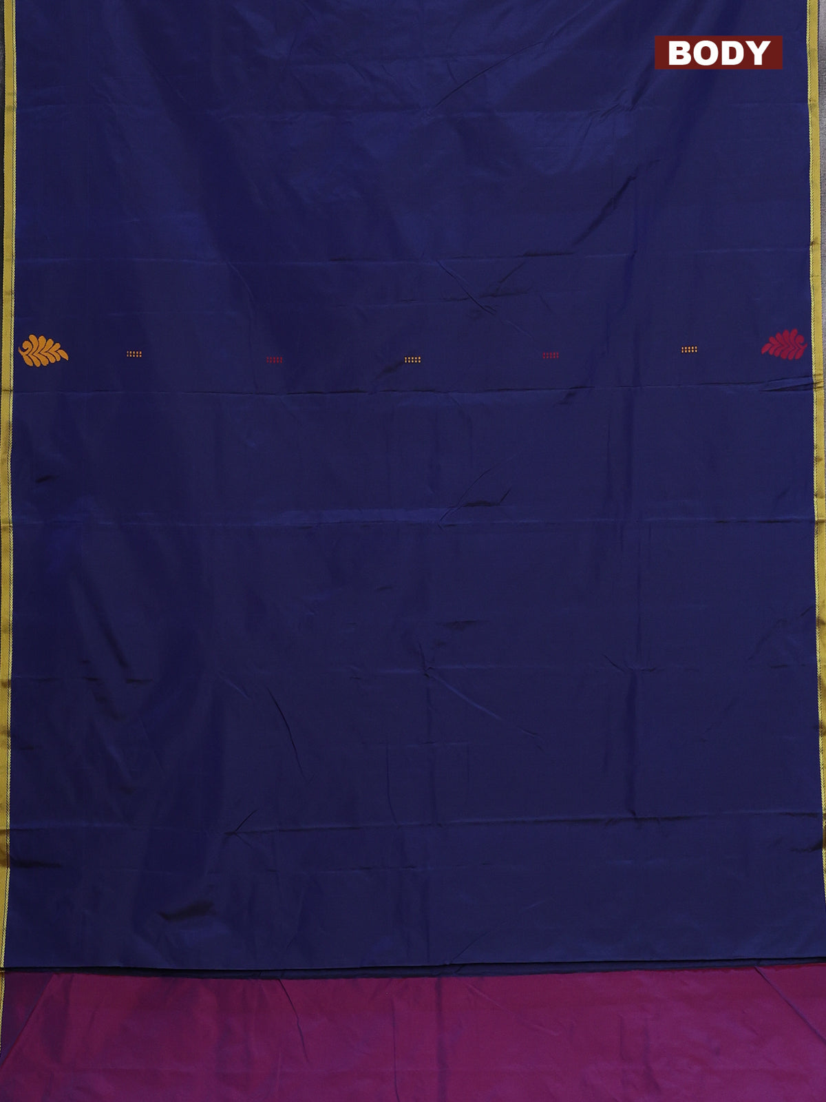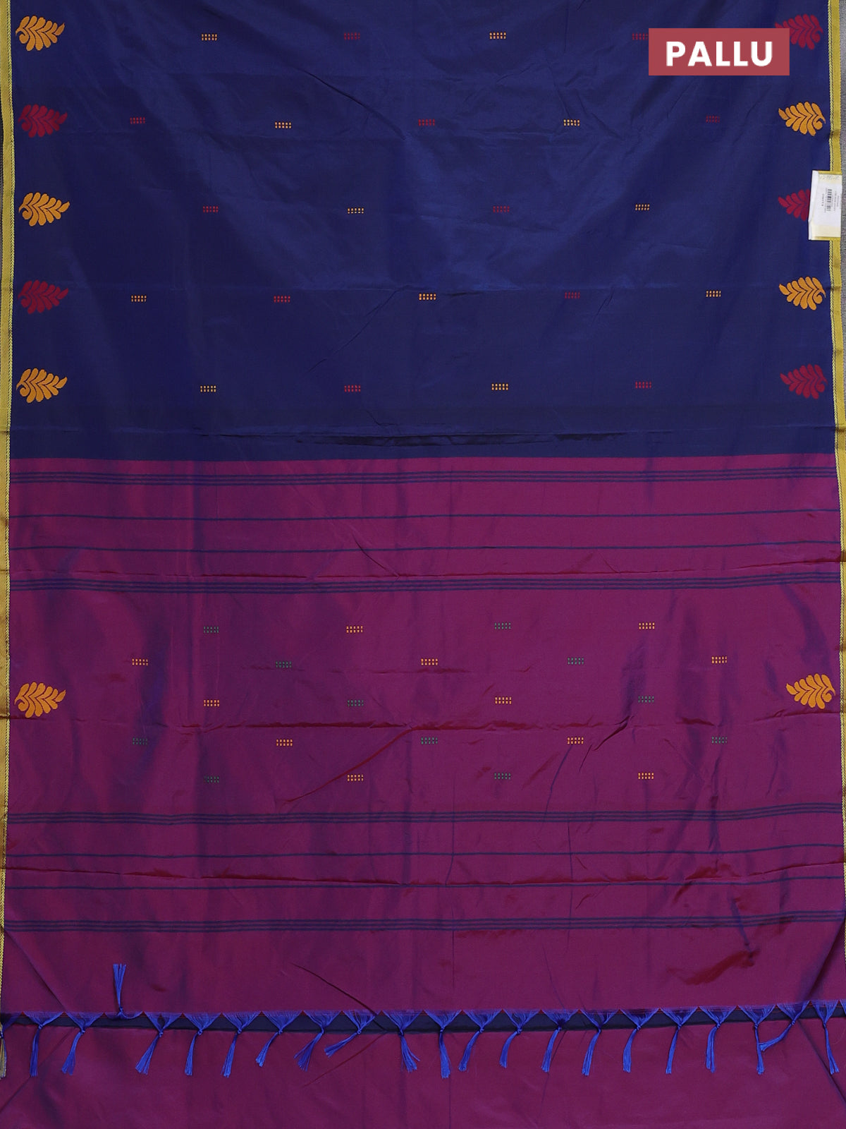 Arani semi silk saree dark blue and dual shade of maroon with thread woven buttas and piping border