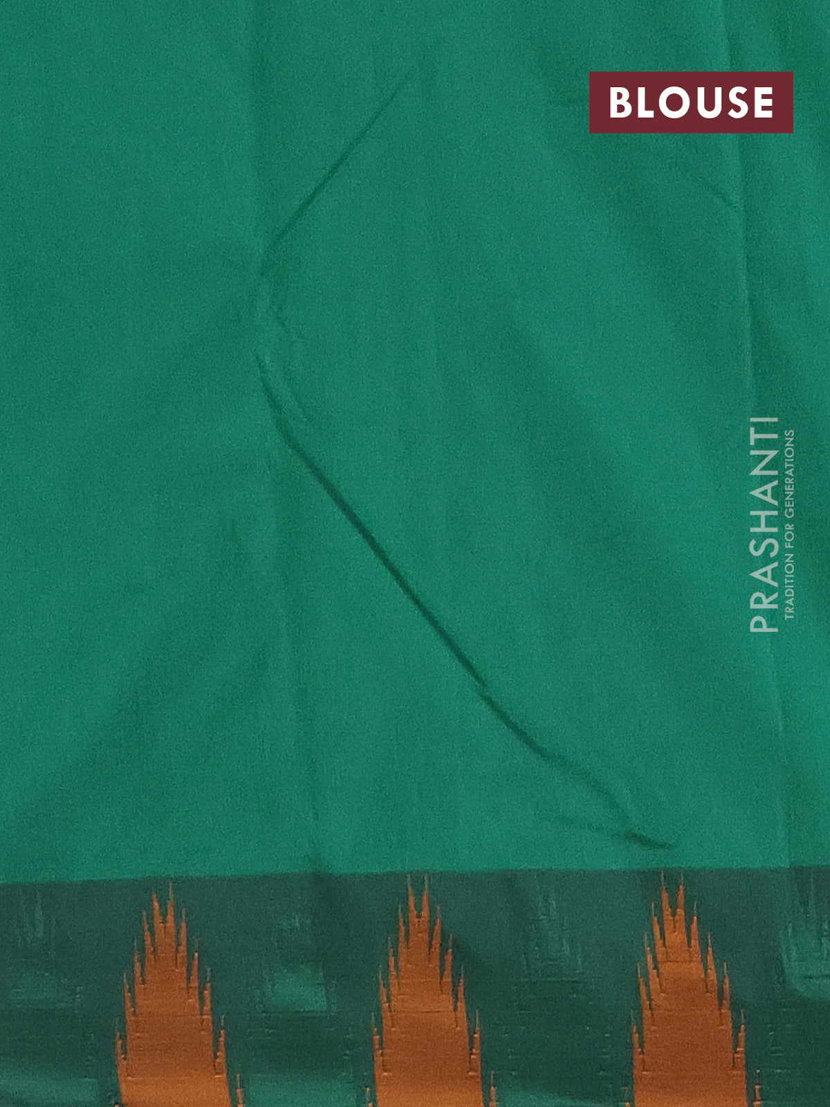 Arani semi silk saree deep purple and green mustard yellow with plain body and temple design border