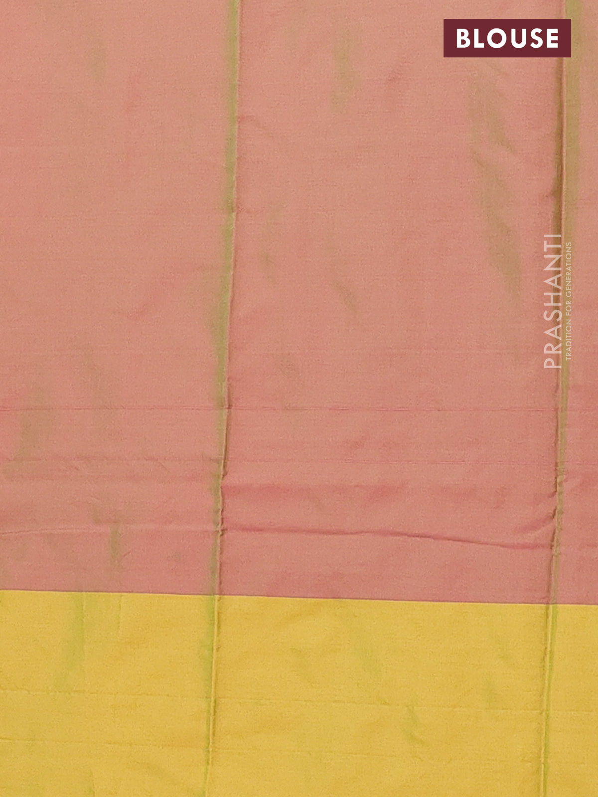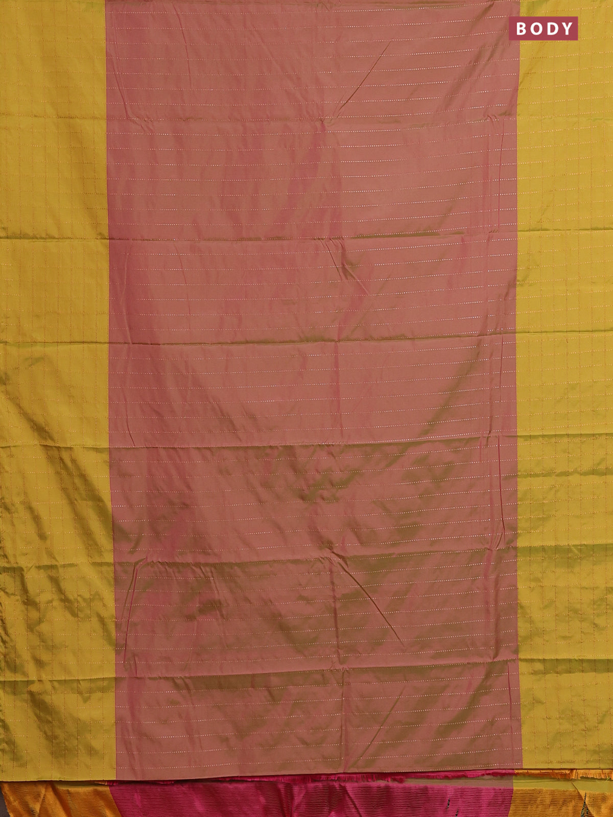 Arani semi silk saree dual shade of greenish pink and lime green with allover copper zari weaves and zari checked border