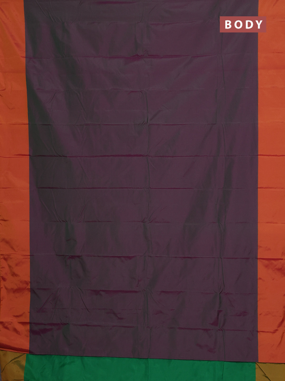 Arani semi silk saree dual shade of greenish purple and sunset orange with zari woven buttas and paisley zari woven butta border