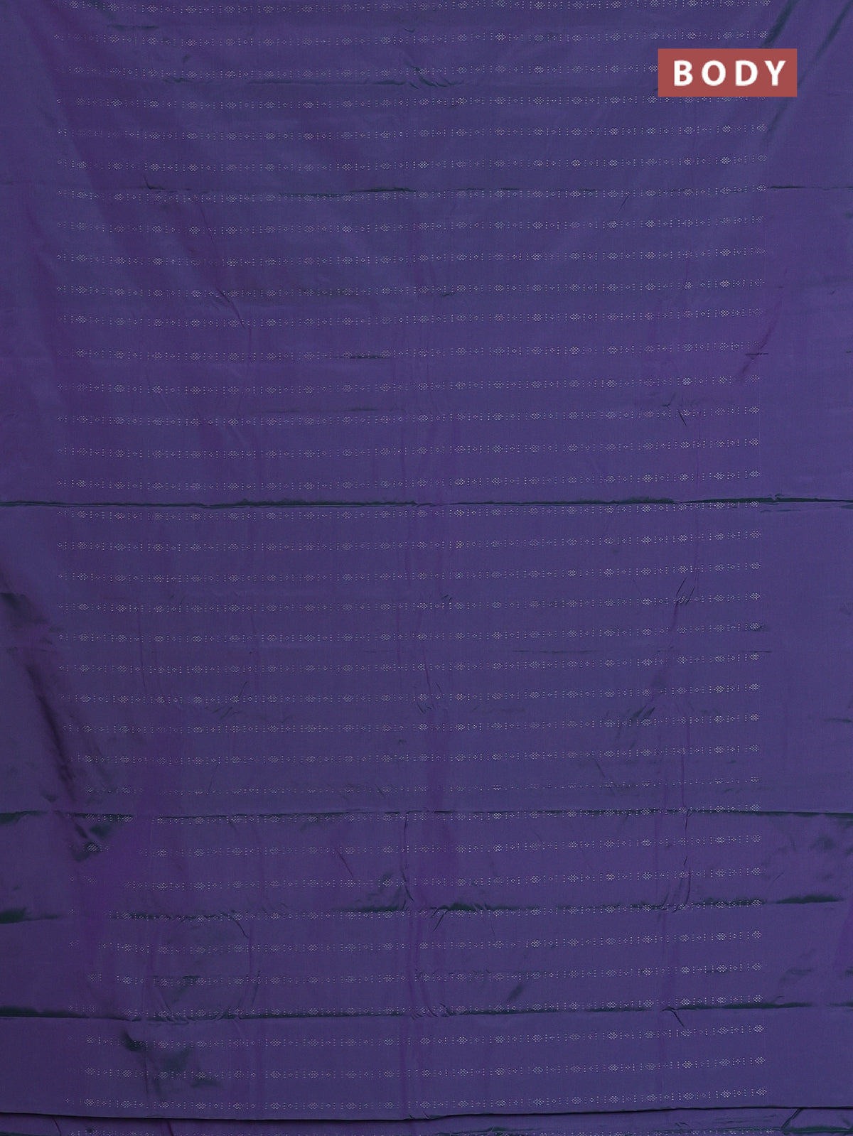Arani semi silk saree dual shade of greenish violet with allover silver zari weaves in borderless style