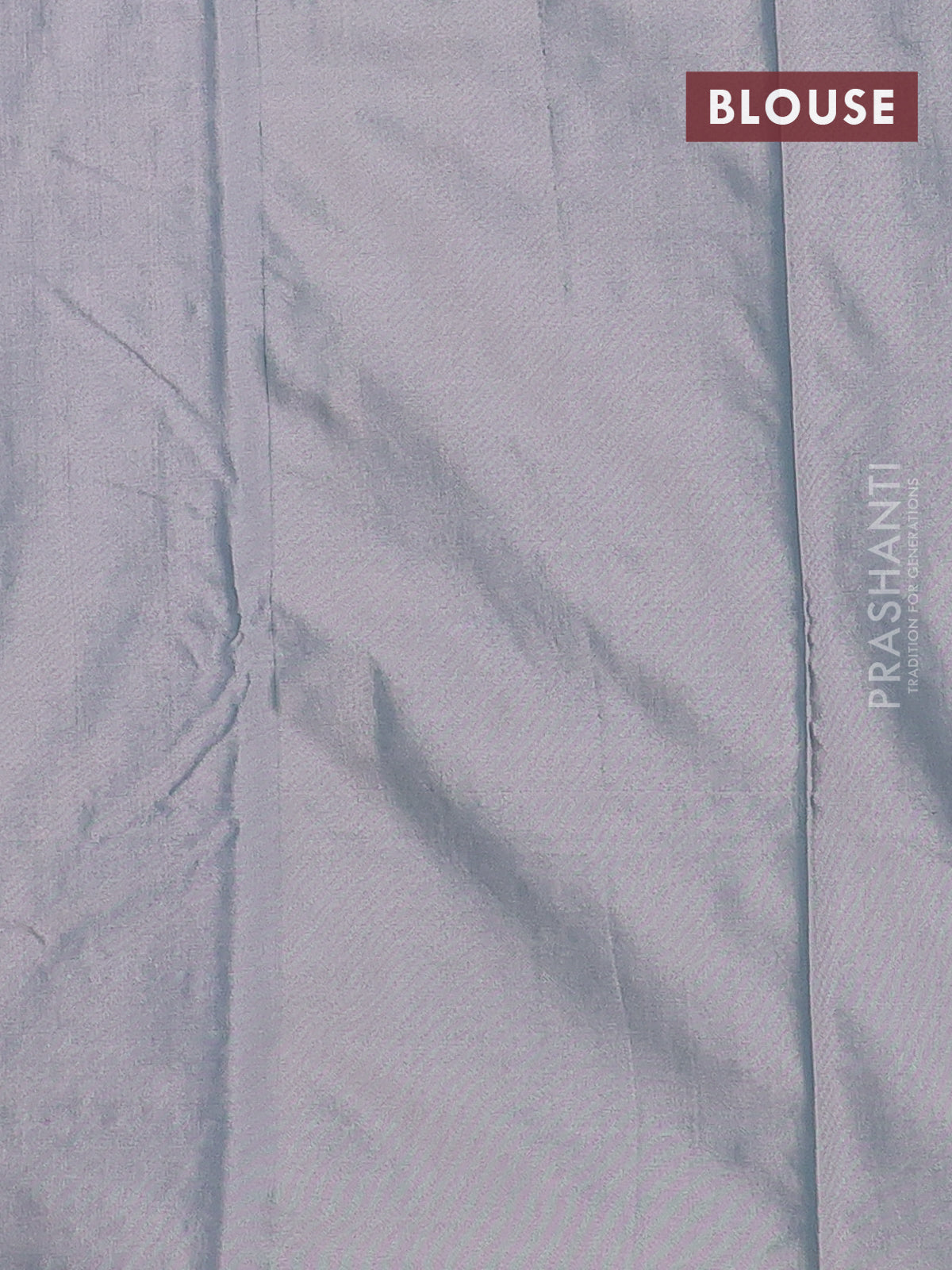 Arani semi silk saree dual shade of grey with allover silver zari weaves in borderless style