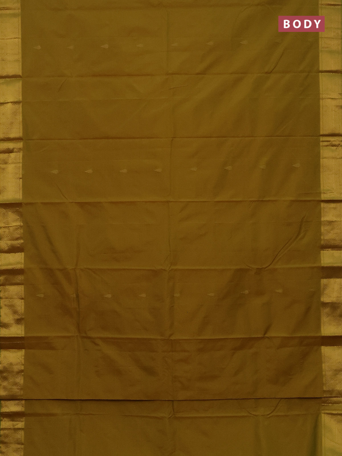 Arani semi silk saree dual shade of mustard yellow with zari woven thilak buttas and zari woven border