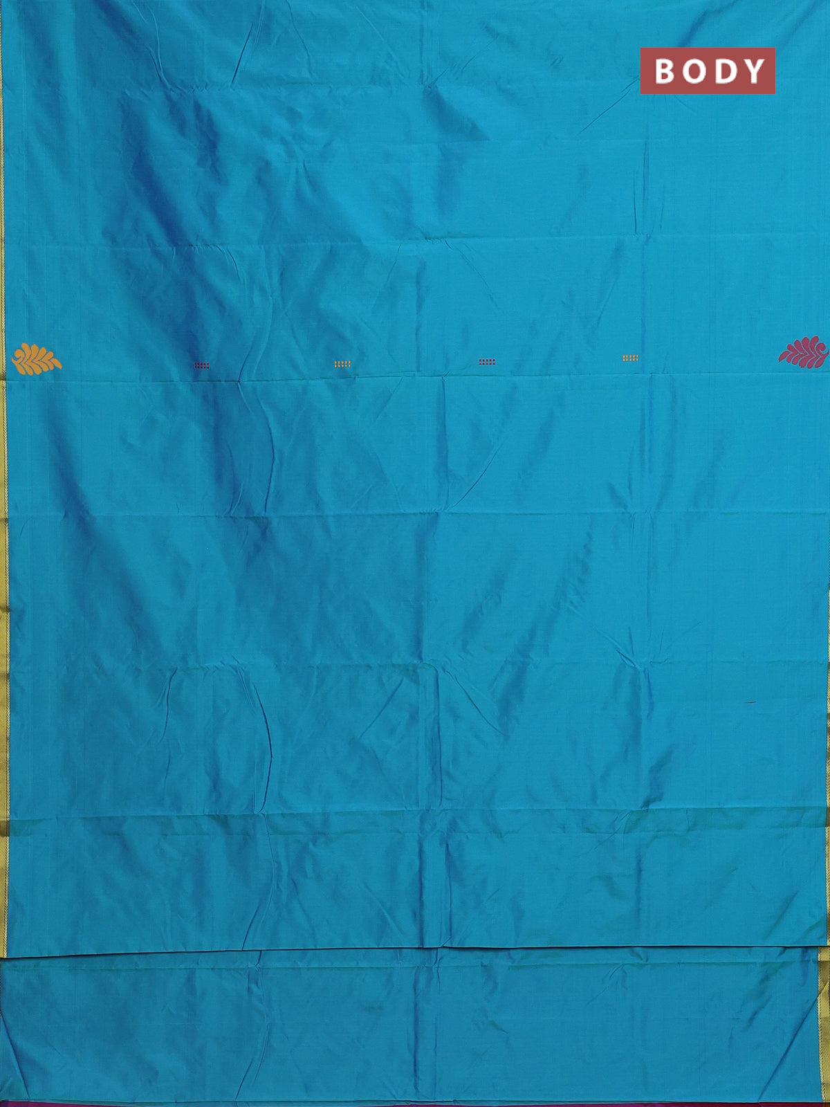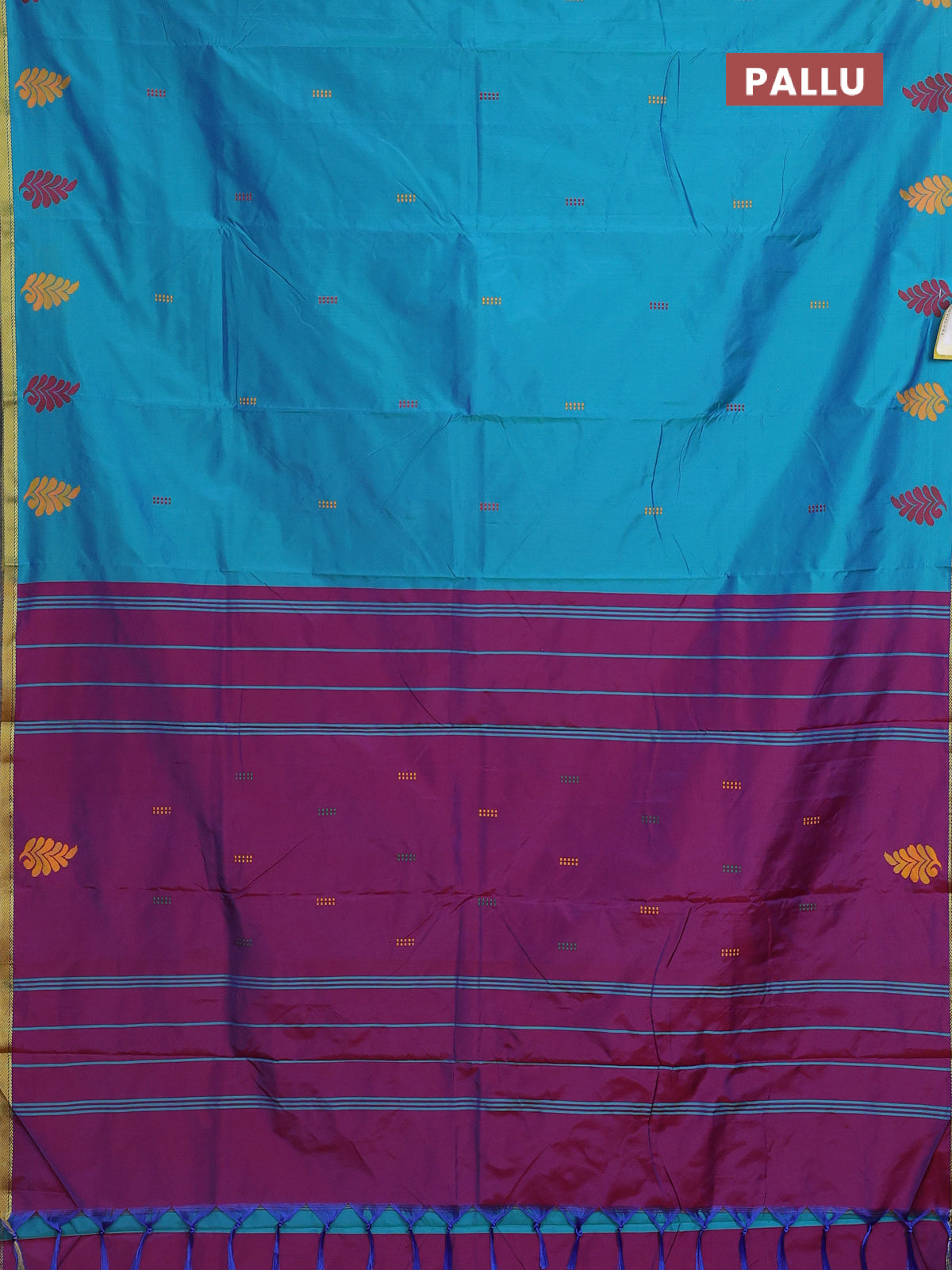Arani semi silk saree dual shade of teal bluish green and dual shade of maroon with thread woven buttas and piping border