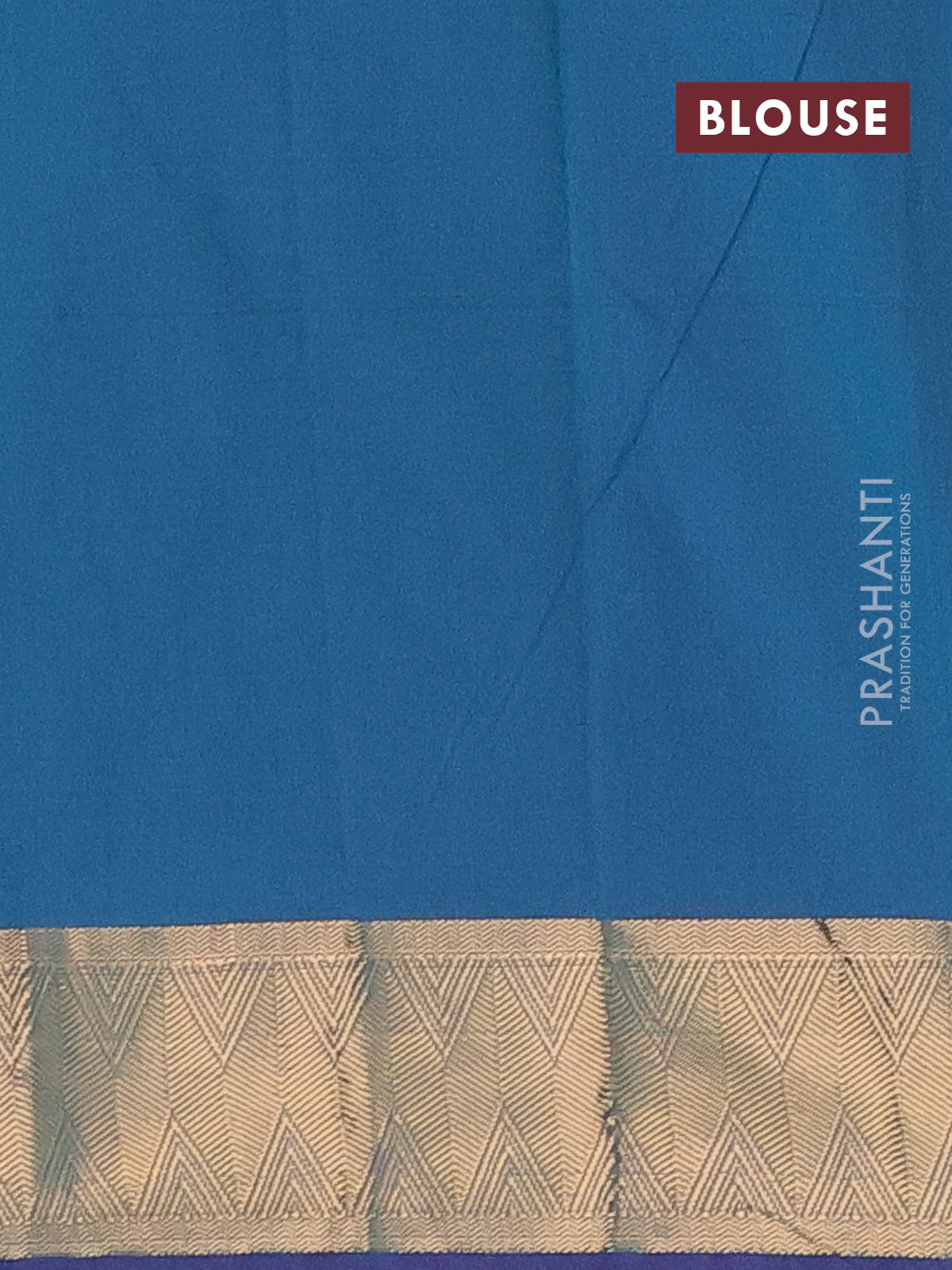 Arani semi silk saree dual shade of teal green with zari woven thilak buttas and zari woven border