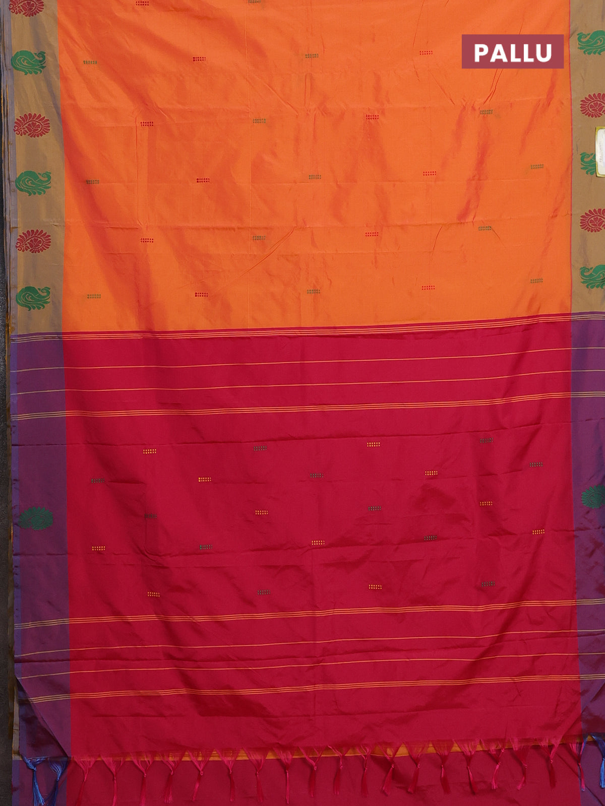 Arani semi silk saree orange and dual shade of maroon with thread woven buttas and thread woven butta border