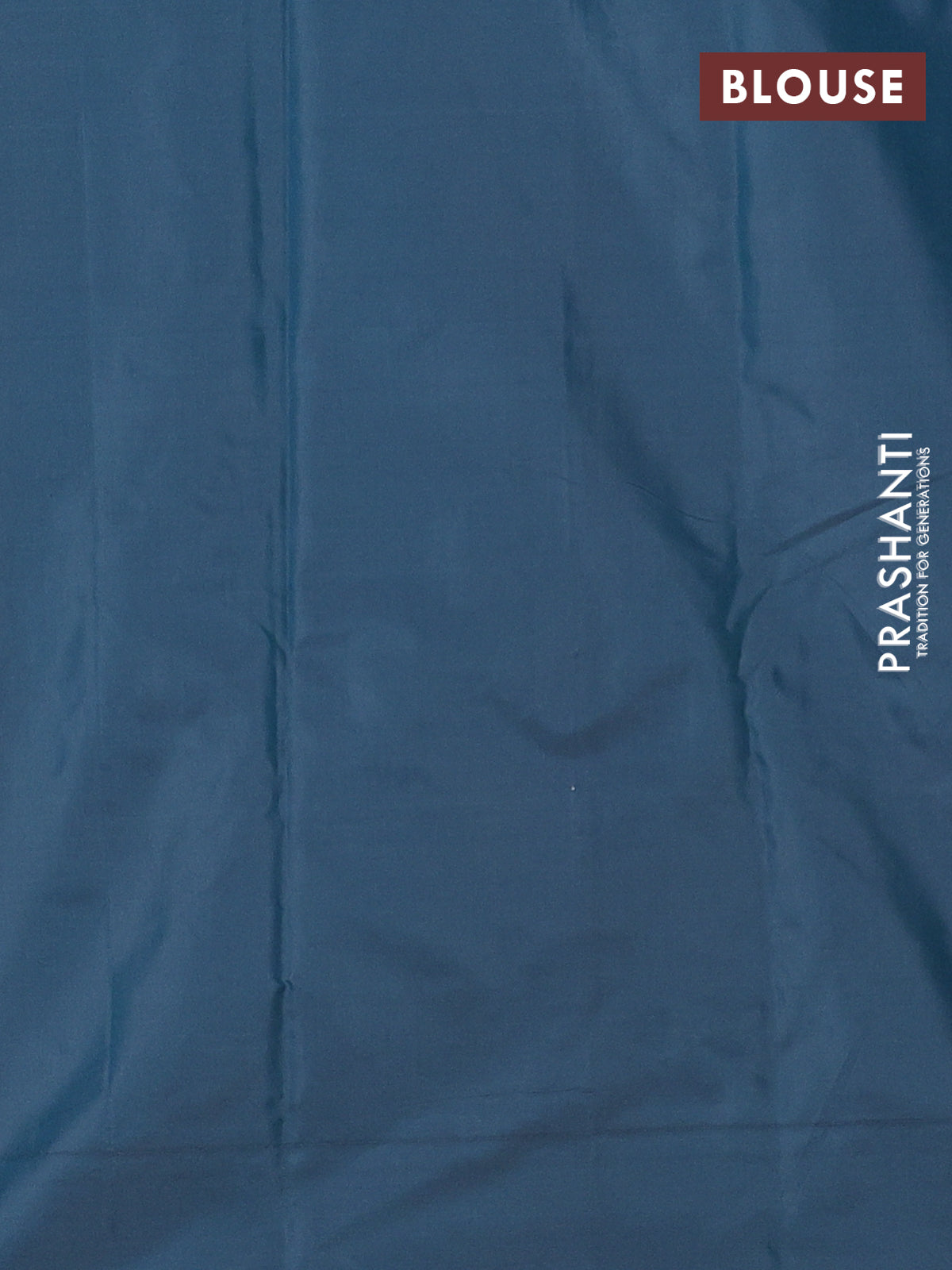 Arani semi silk saree peacock green with copper zari woven buttas in borderless style