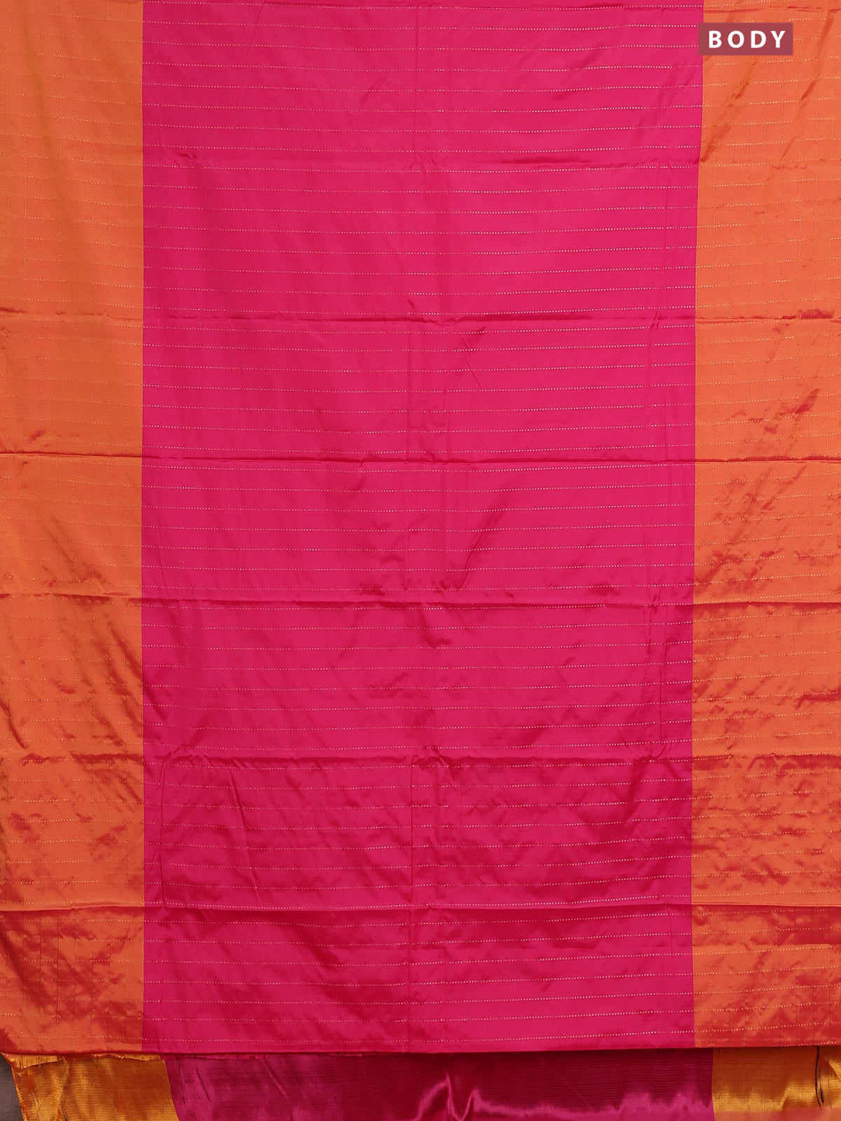 Arani semi silk saree pink and dark mustard with allover copper zari weaves and zari checked border