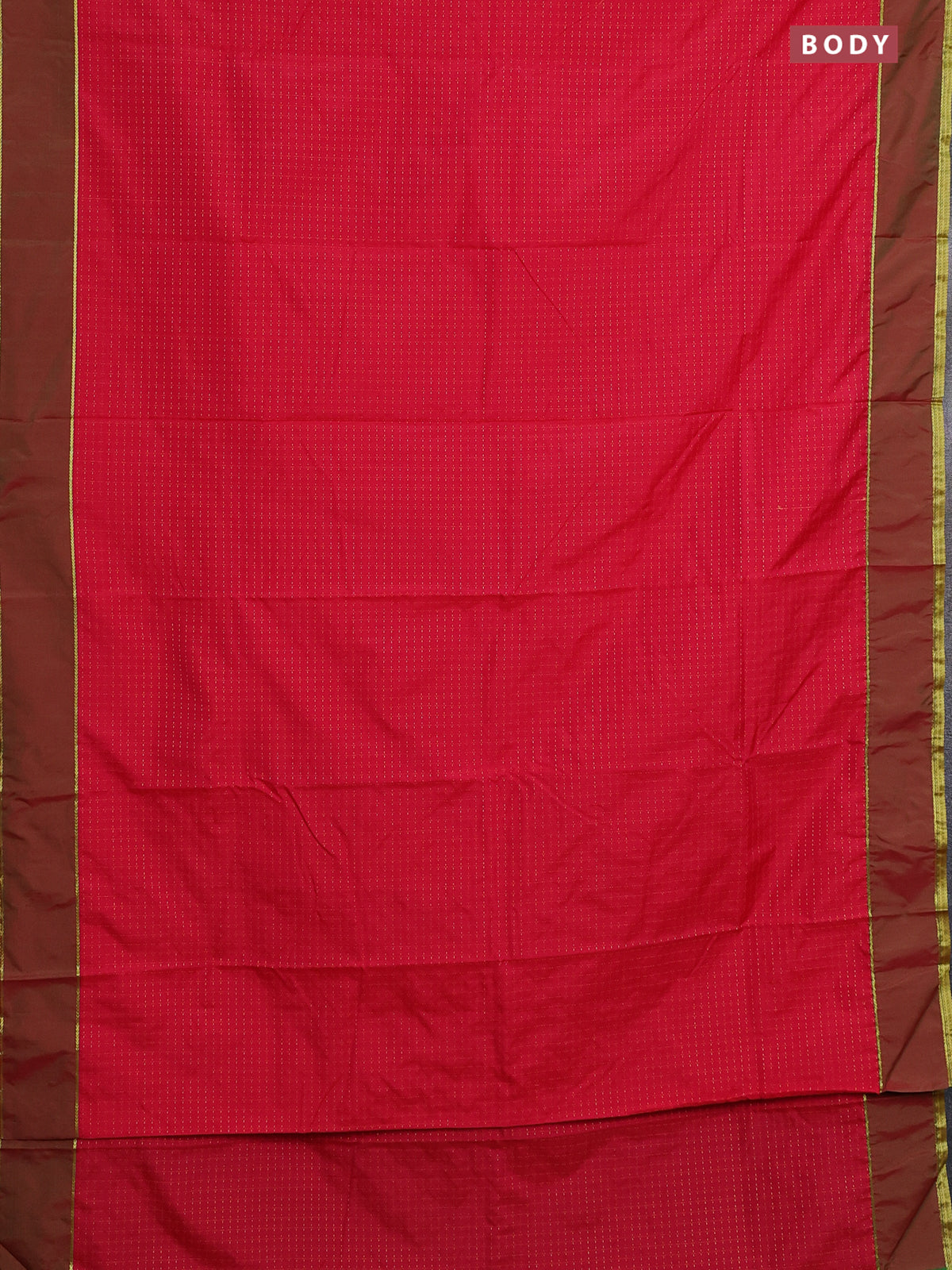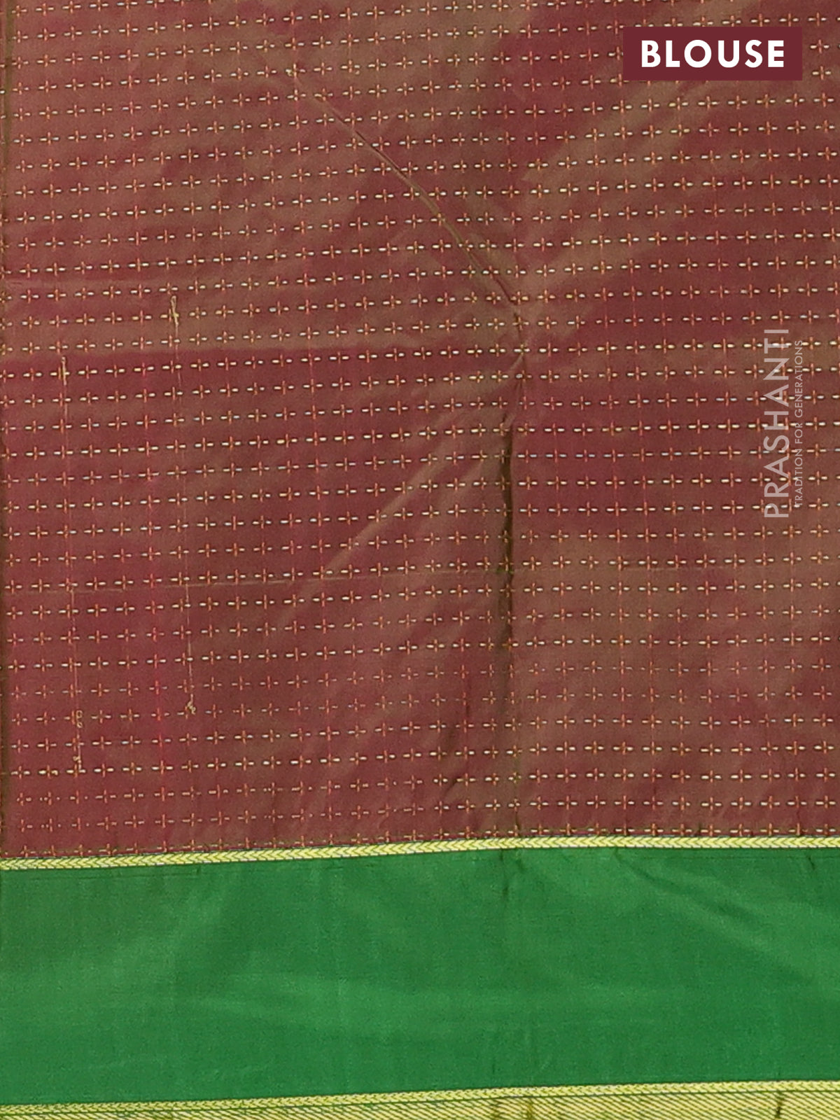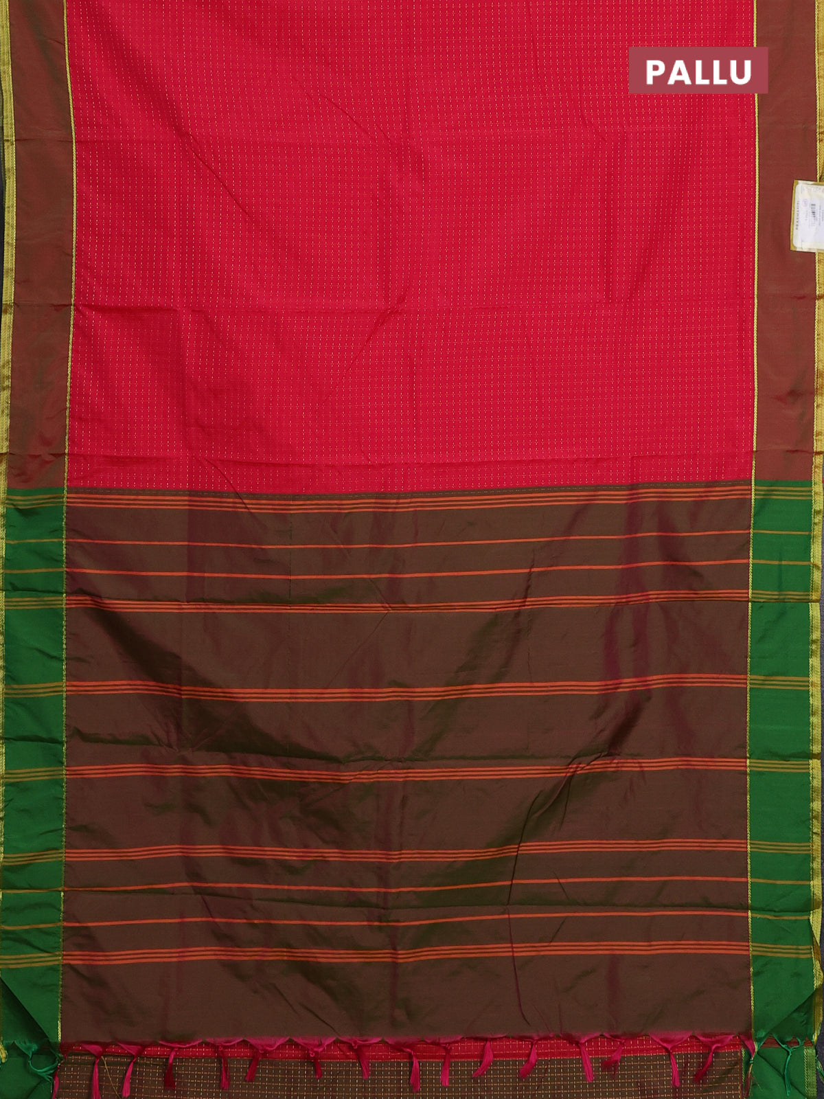 Arani semi silk saree reddish pink and dual shade of green with allover thread weaves and rettapet zari woven border`