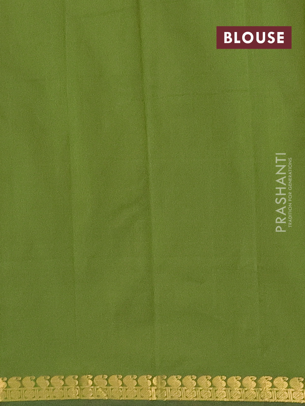 Arani semi silk saree sap green with rudhraksha & paisley zari woven buttas and zari woven border