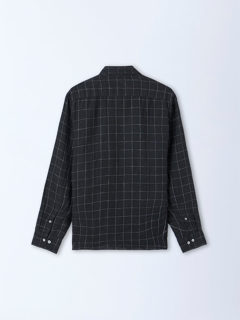 Ascot Black Check Relaxed Fit Linen Shirt