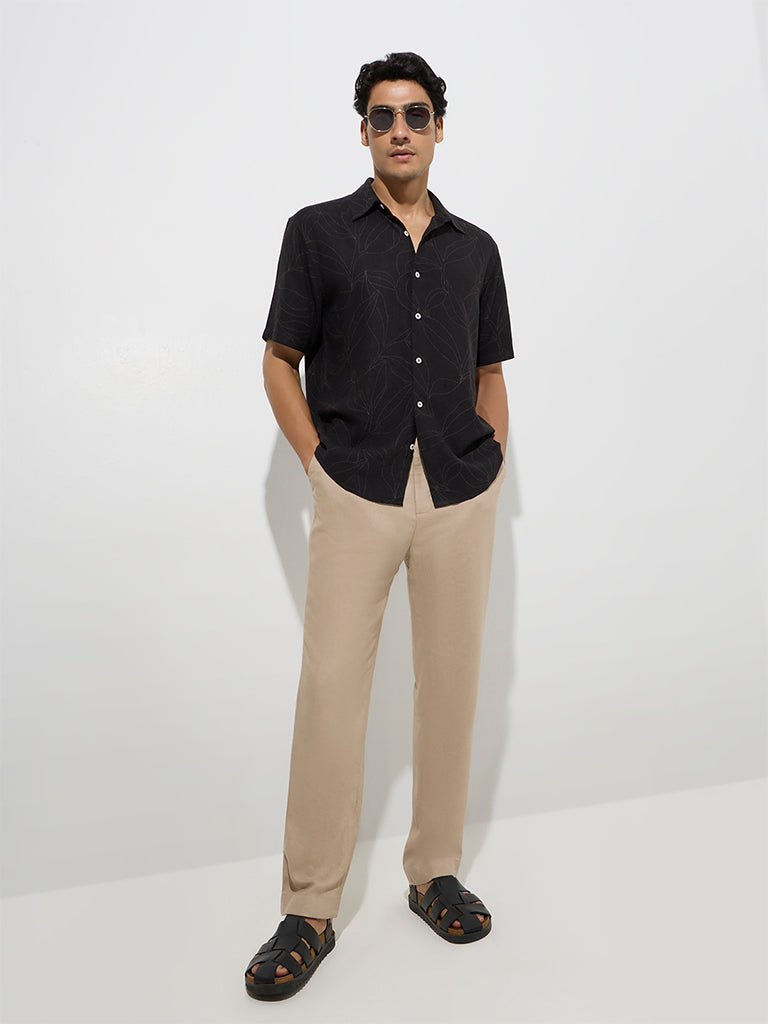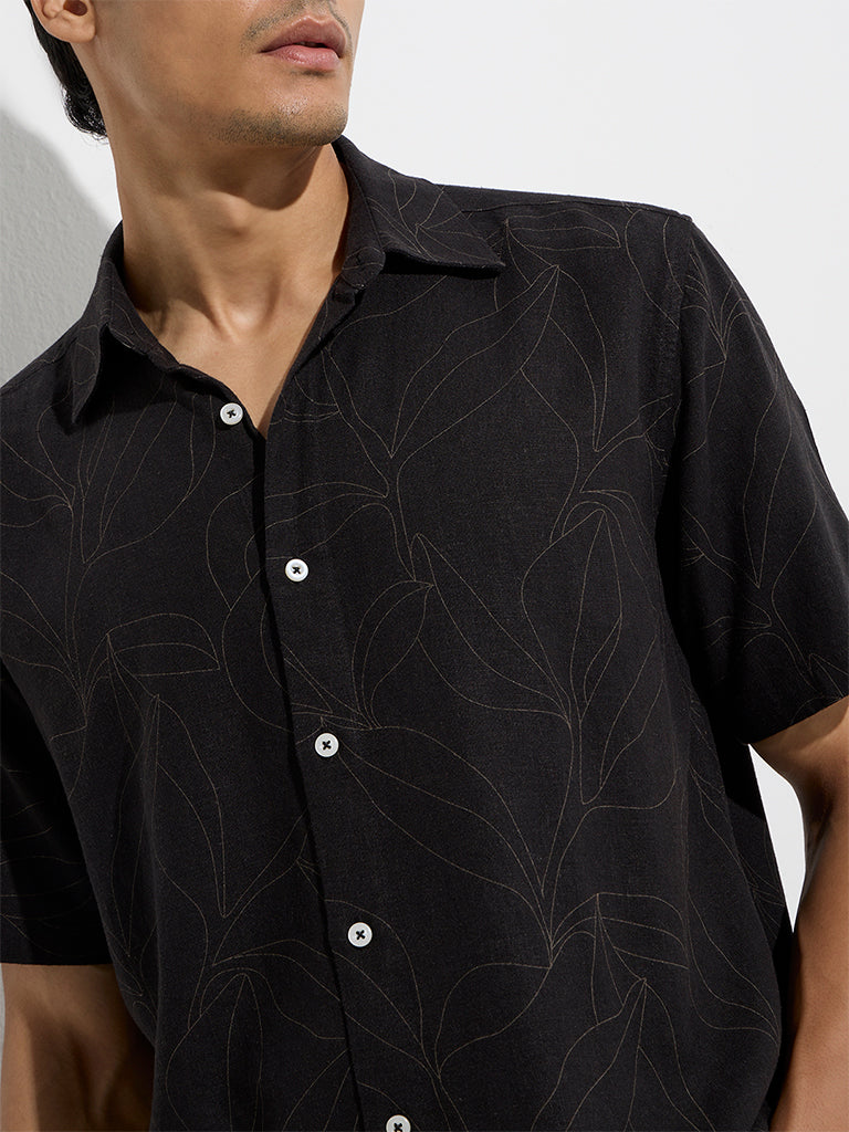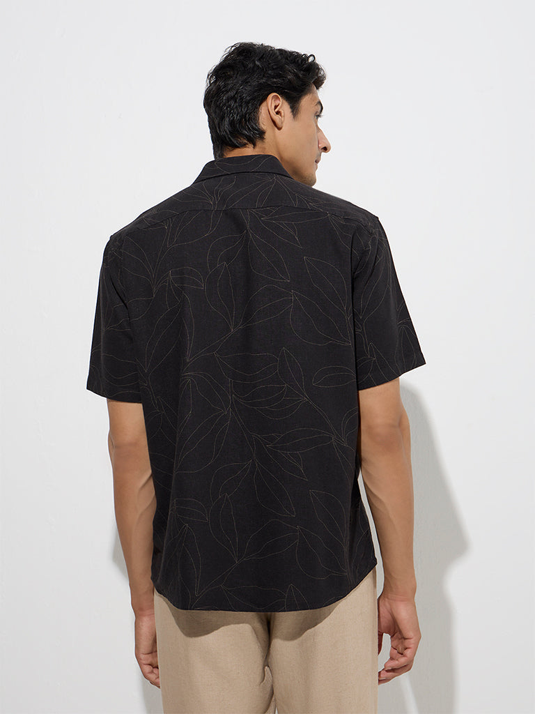 Ascot Black Leaf Design Relaxed-Fit Cotton-Blend Shirt