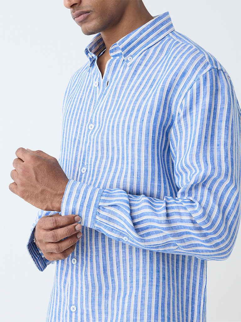 Ascot Blue Striped Relaxed-Fit Linen Shirt