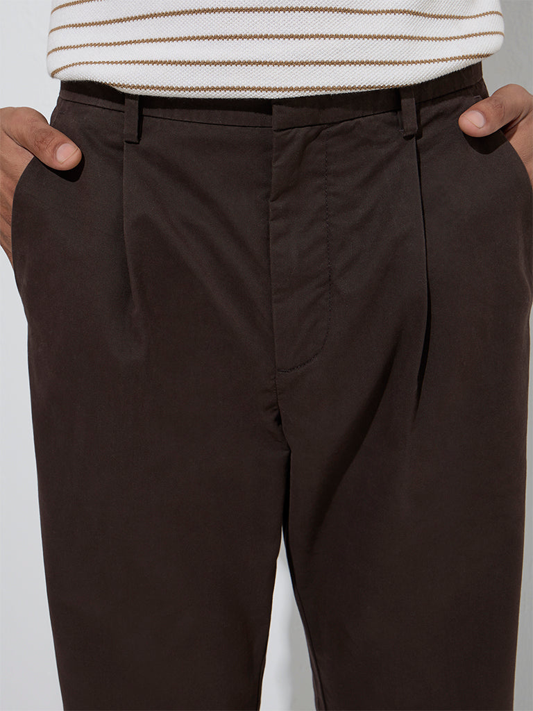 Ascot Brown Relaxed-Fit Mid-Rise Cotton-Blend Chinos
