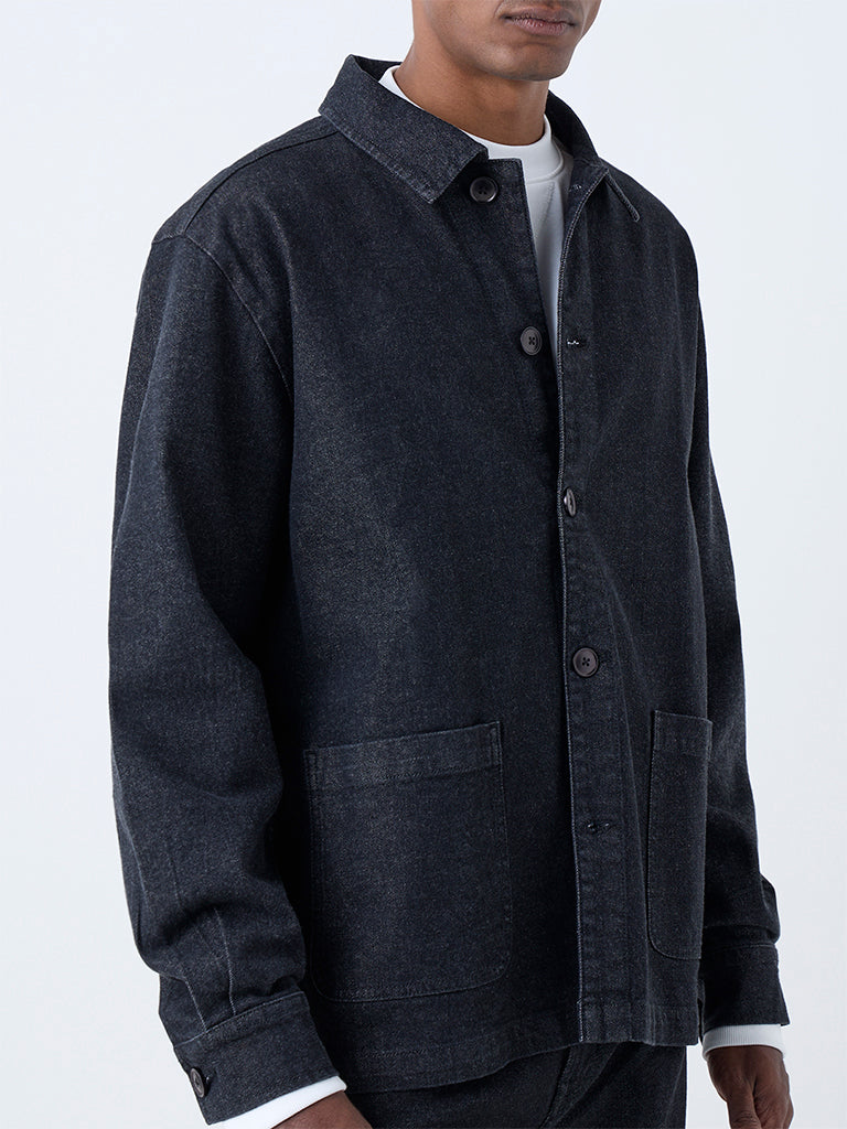 Ascot presents this charcoal shirt crafted from breathable cotton in a relaxed fit for day-long ease. Designed with a spread collar and button-down front, it features full sleeves and two front pockets that add a functional finish to its clean silhouette.