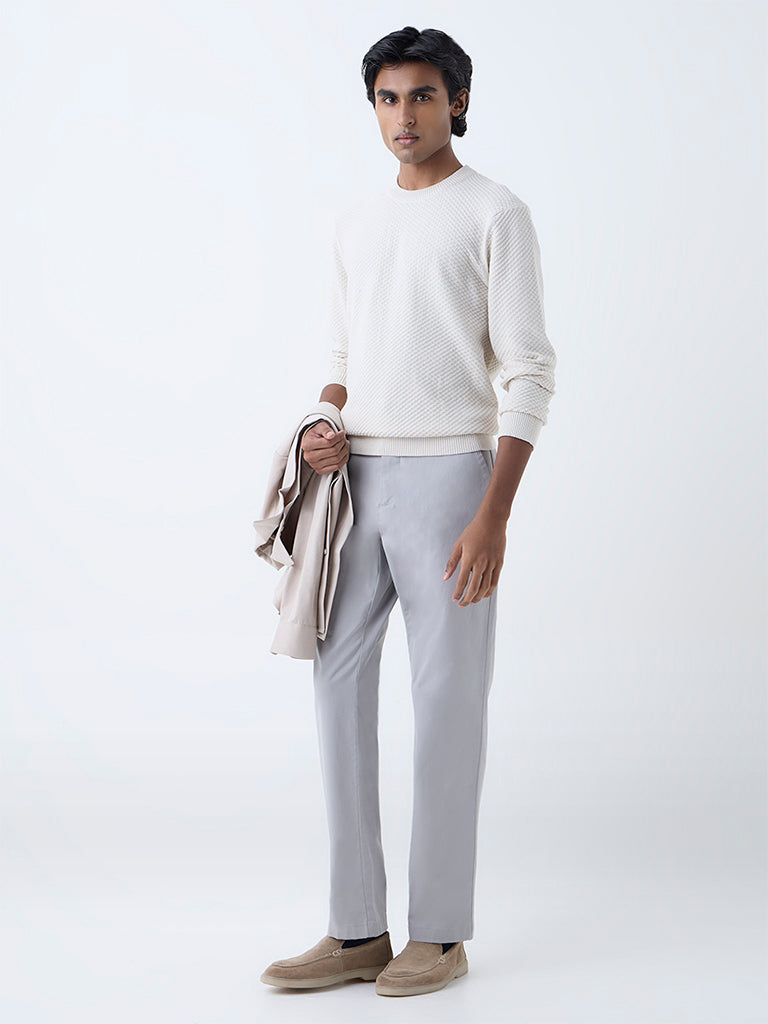 Ascot Cream Knit-Textured Relaxed-Fit Cotton-Blend Sweater