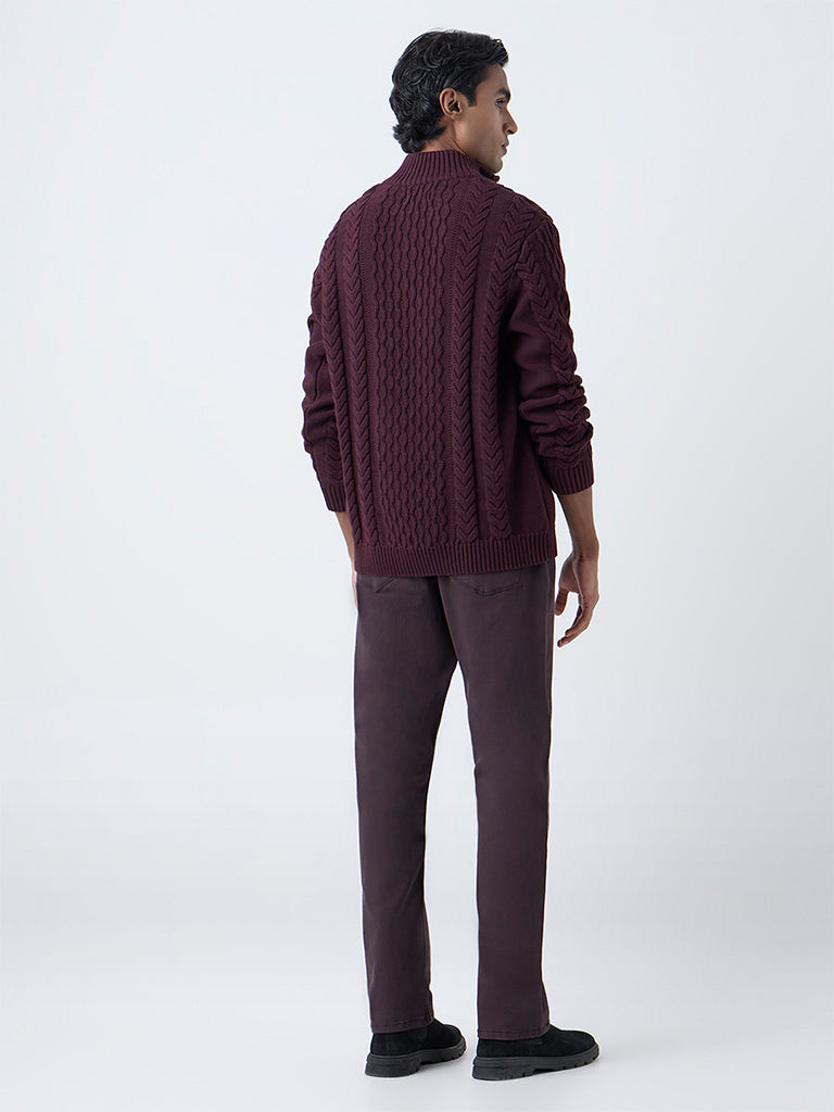 Ascot delivers a modern essential with these dark brown jeans. Crafted from a soft cotton-blend fabric, they are designed with a mid-rise waist and a relaxed-fit silhouette for everyday comfort. Featuring a classic five-pocket construction, buttoned closure and zipper fly, this pair offers a clean, versatile base for smart-casual dressing.