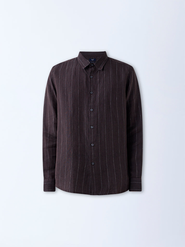 Ascot Dark Brown Striped Relaxed-Fit Linen Shirt