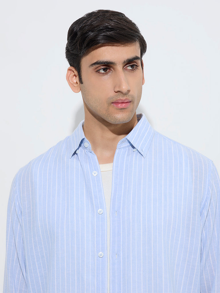 Ascot Light Blue Pinstriped Relaxed-Fit Shirt