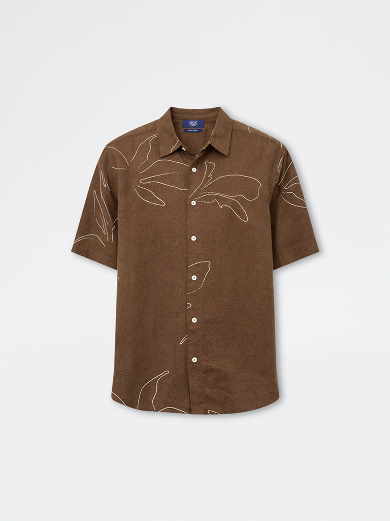 Ascot Taupe Floral Pattern Relaxed-Fit Shirt