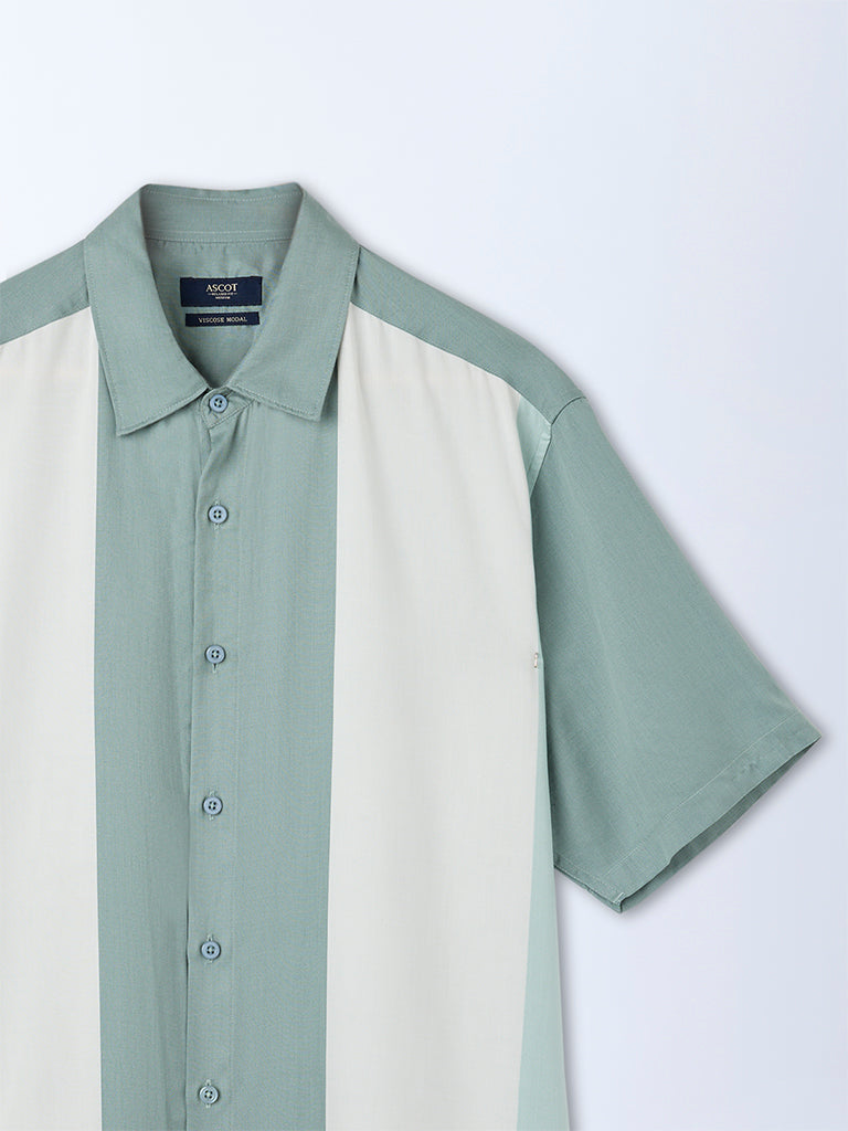 Ascot Teal Colour-Blocked Relaxed-Fit Shirt