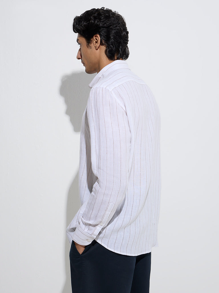 Ascot White Stripe Printed Relaxed-Fit Linen Shirt