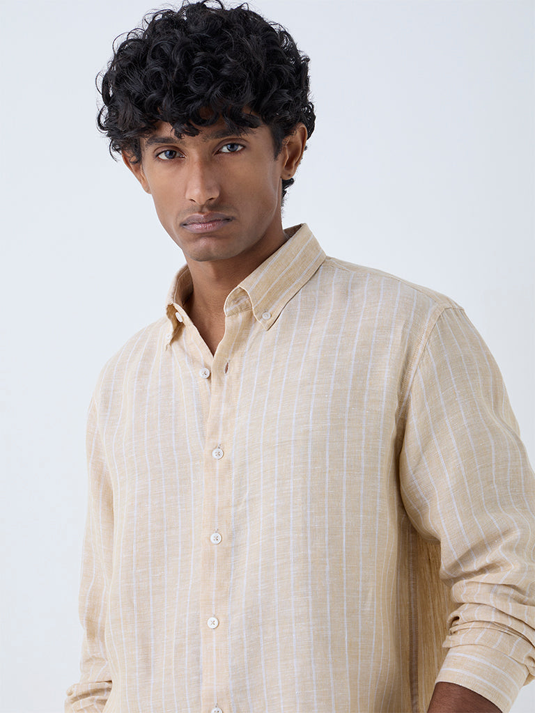 Ascot Yellow Striped Relaxed-Fit Linen Shirt