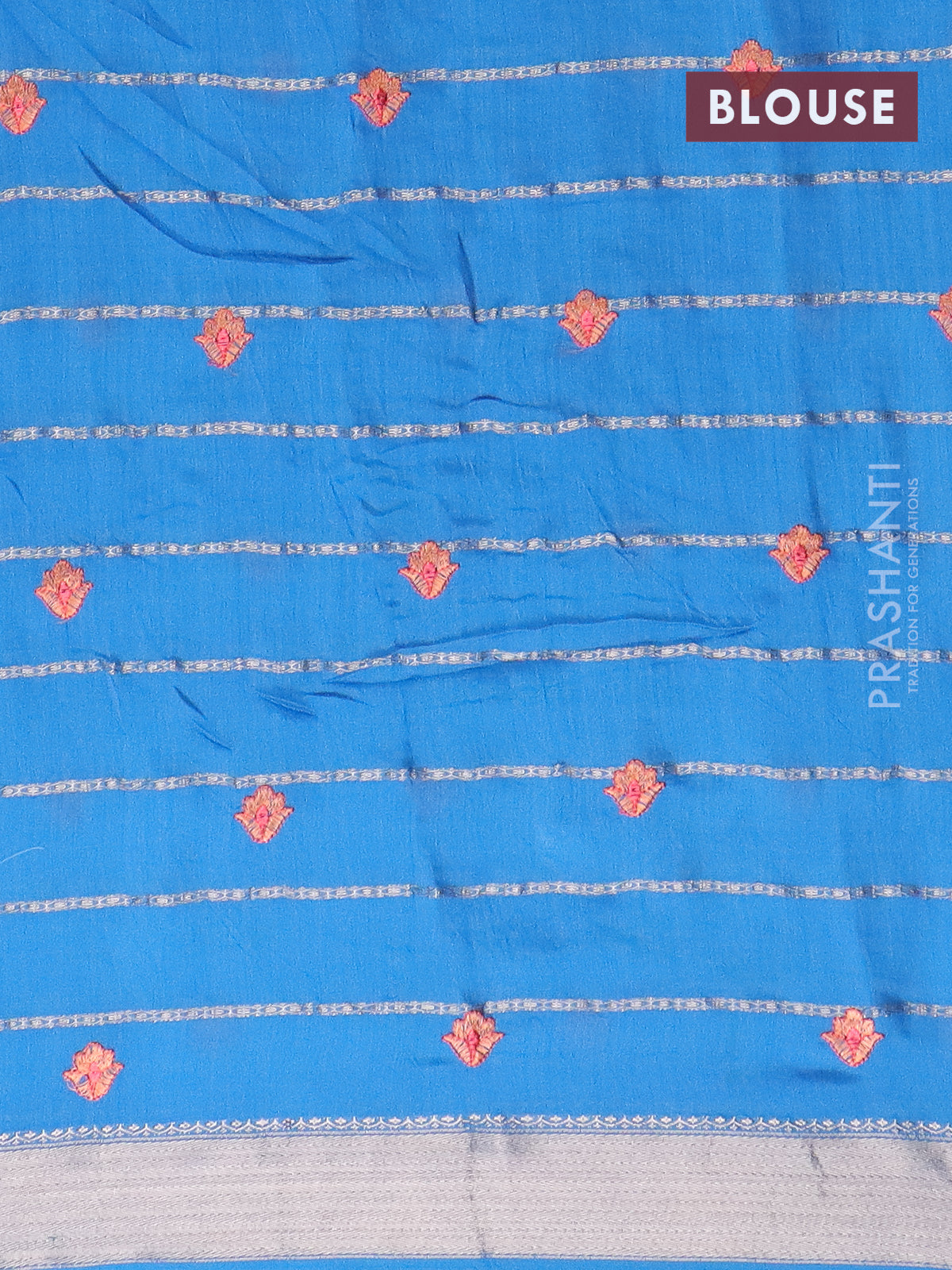 Assam silk saree cs blue with allover zari weaves & embroidery work buttas and zari woven border