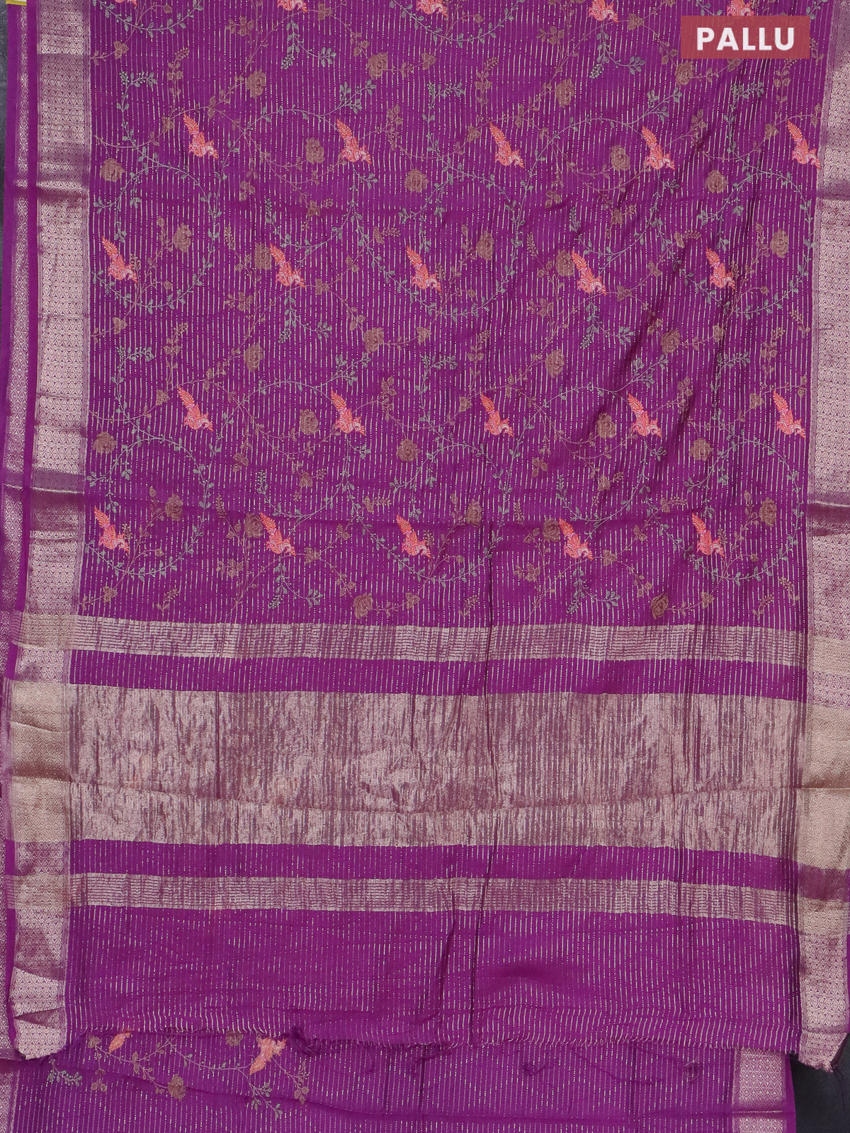 Assam silk saree purple with allover zari weaves & embroidery work and zari woven border