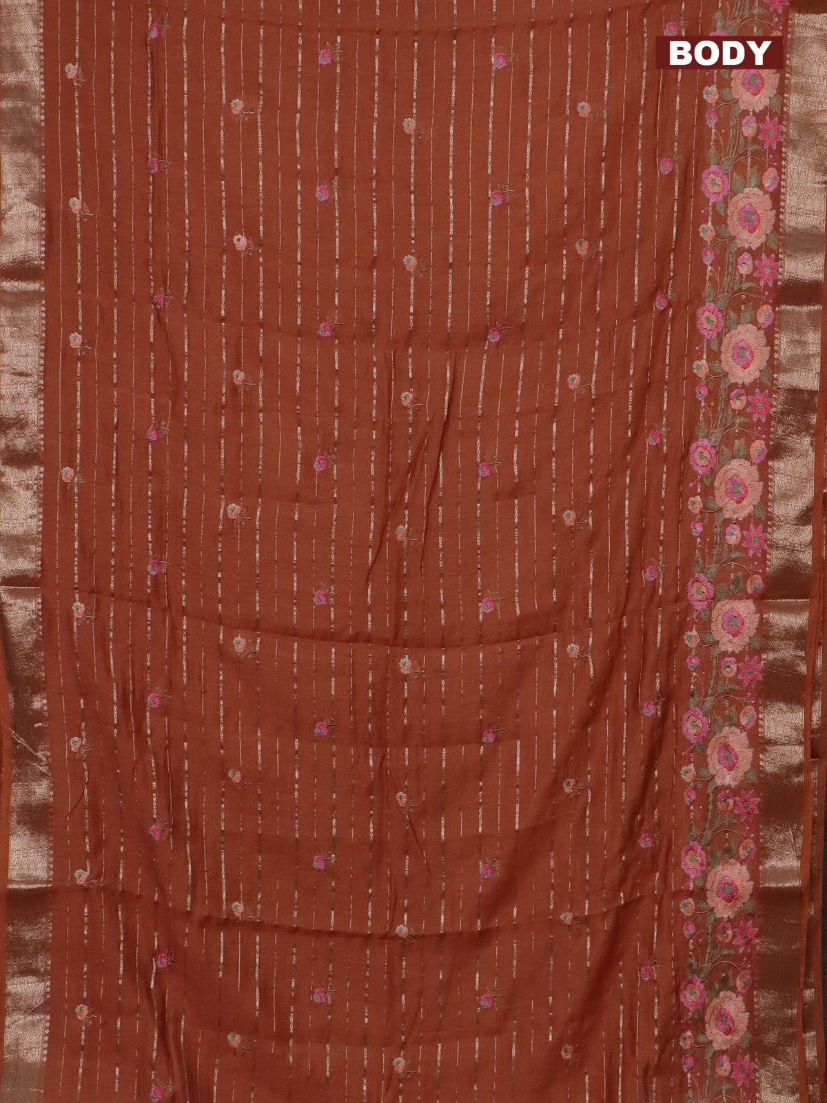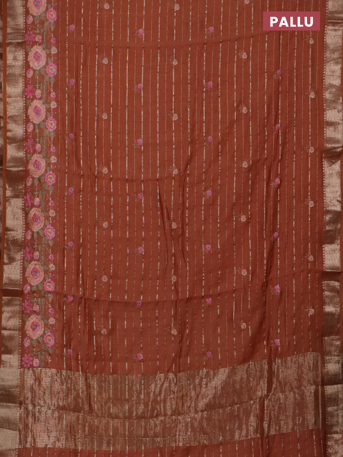 Assam silk saree rust shade with allover zari weaves & floral embroidery work buttas and zari woven border
