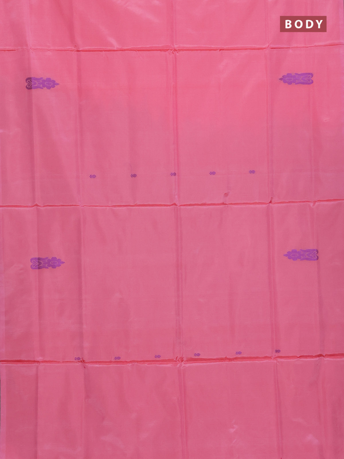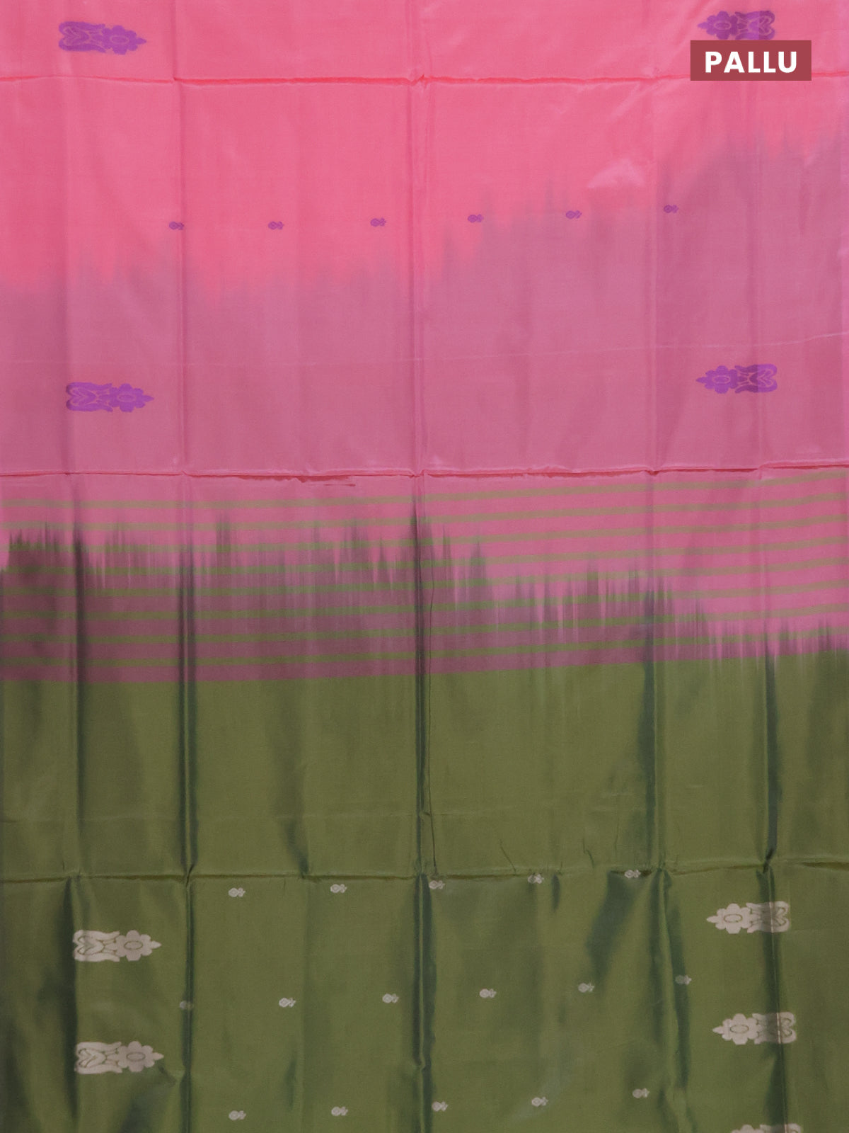 Banana pith saree peach pink and sap green with thread woven buttas in borderless style