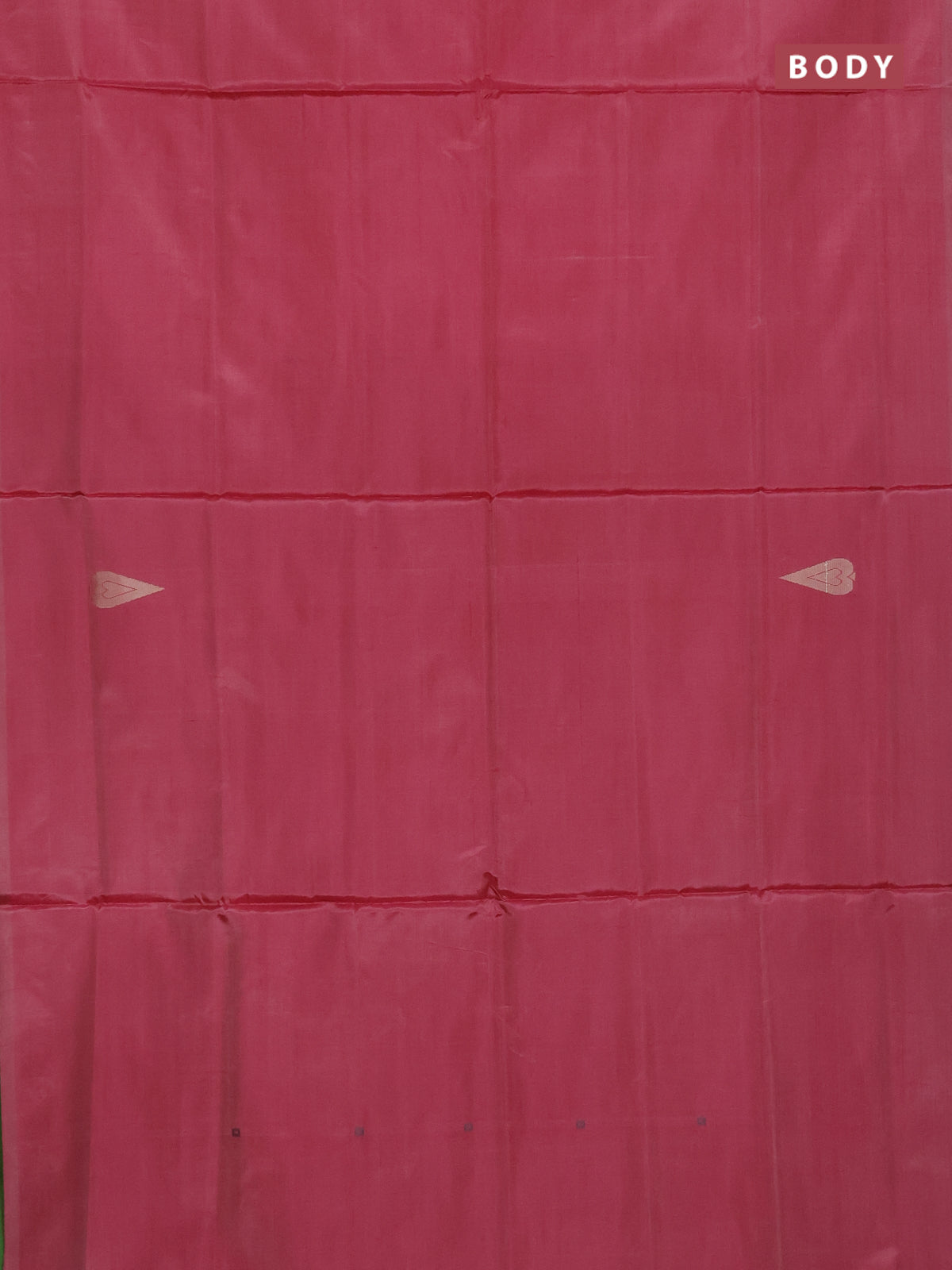 Banana pith saree pink shade and green with thread woven buttas in borderless style