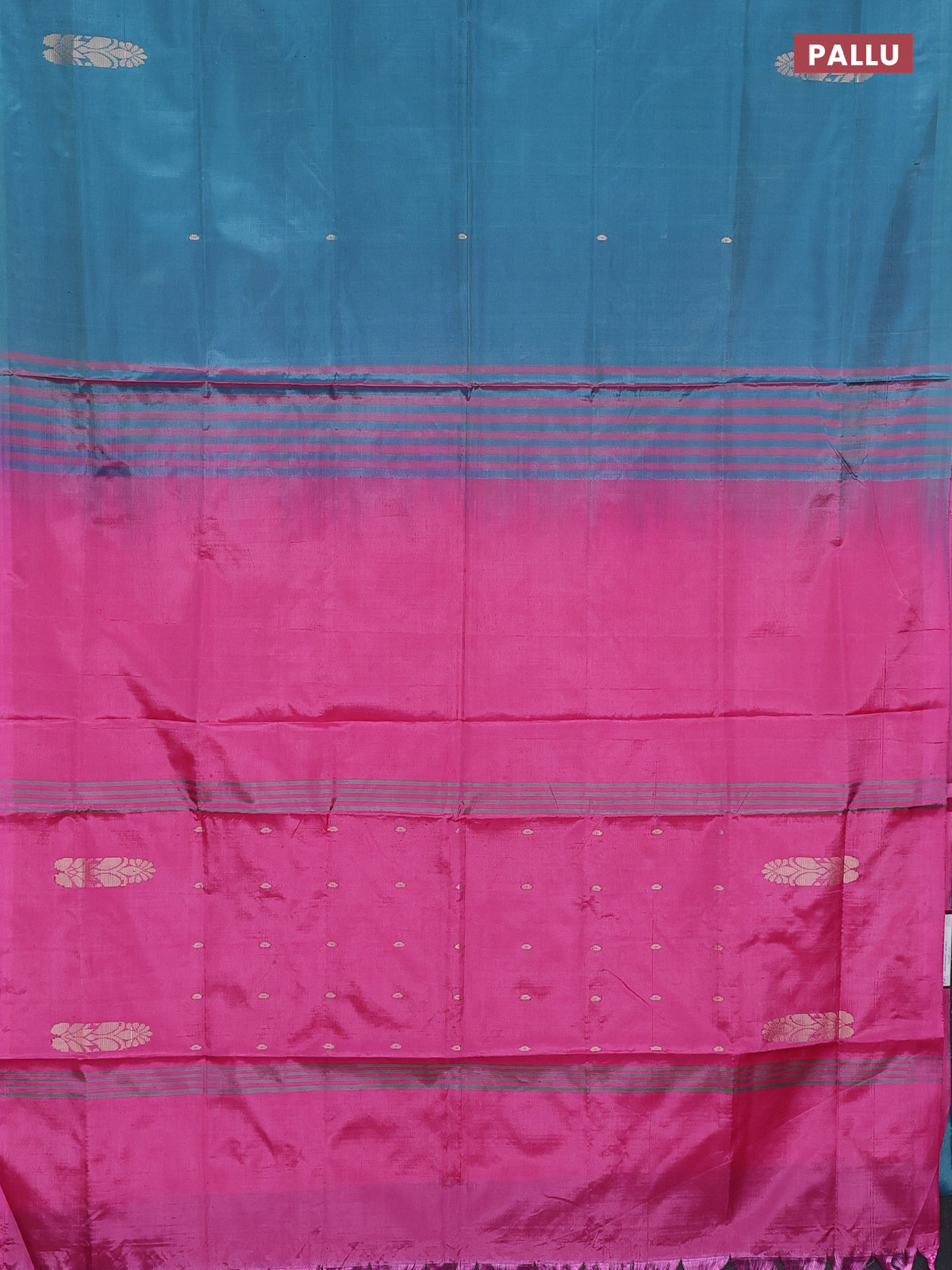 Banana pith saree teal green and pink with thread woven buttas in borderless style