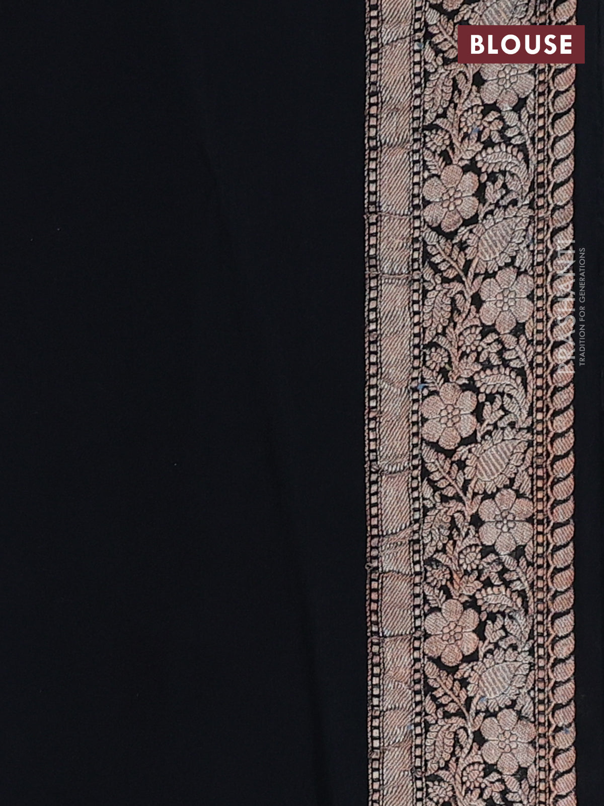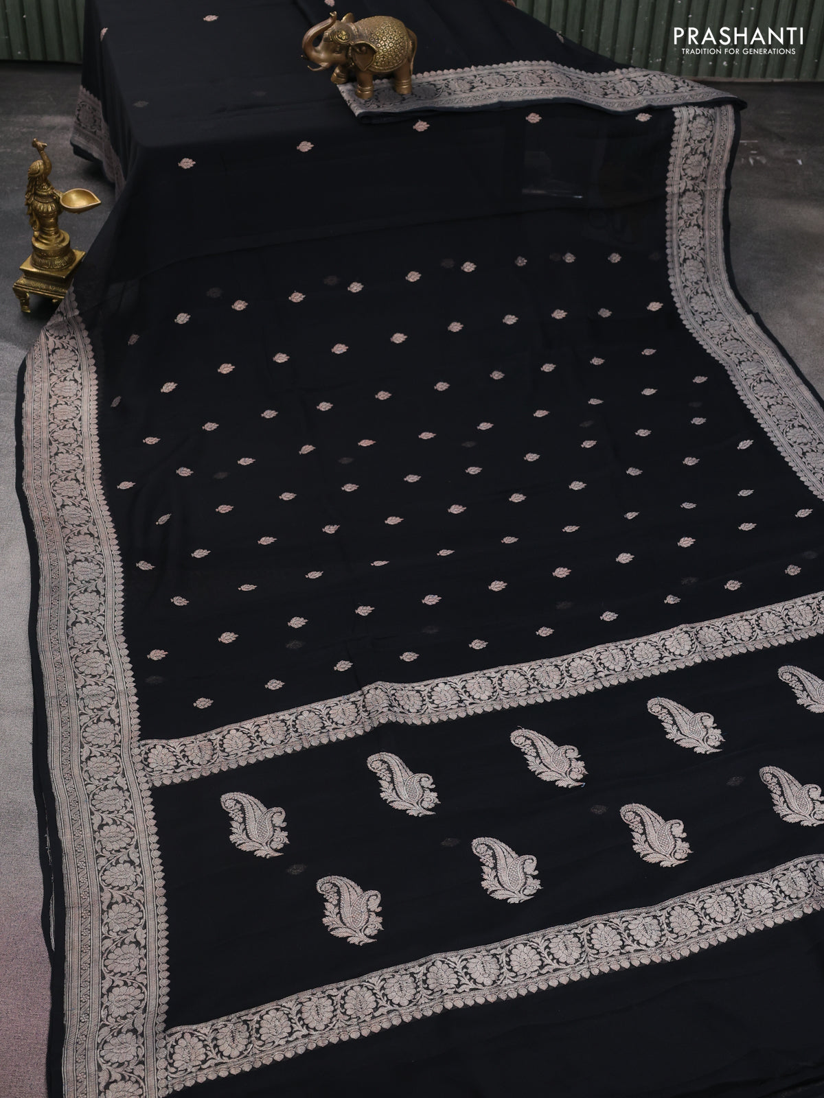 Banarasi chiffon silk saree black with silver zari woven buttas and floral silver zari woven border