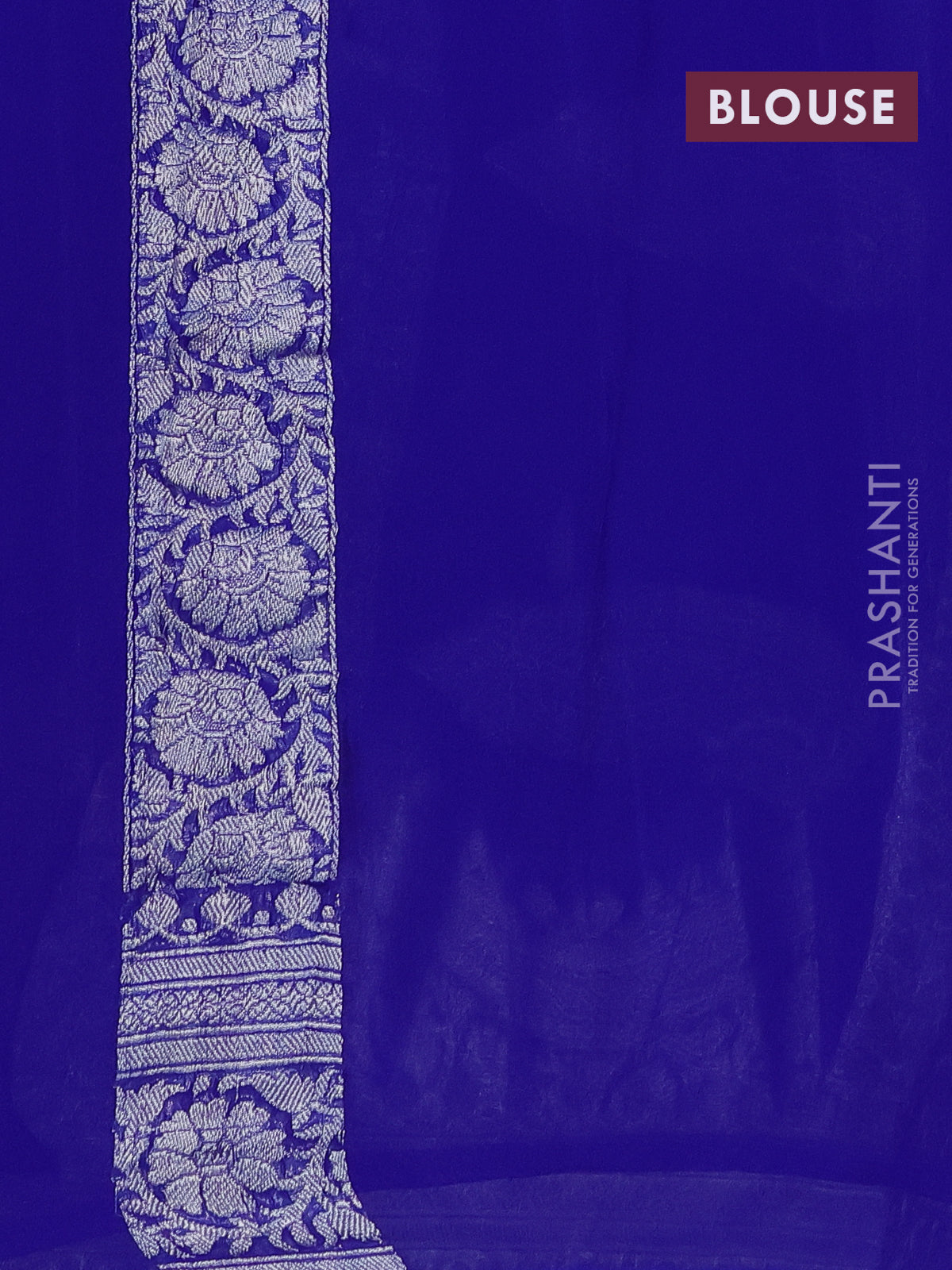 Banarasi chiffon silk saree royal blue with silver zari woven buttas and silver zari woven border