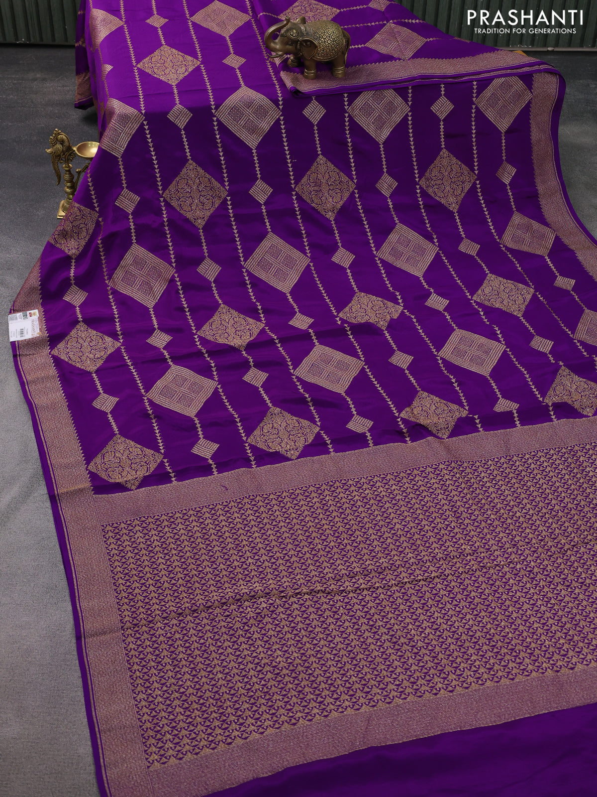 Banarasi crepe saree violet with allover thread & zari weaves and woven border