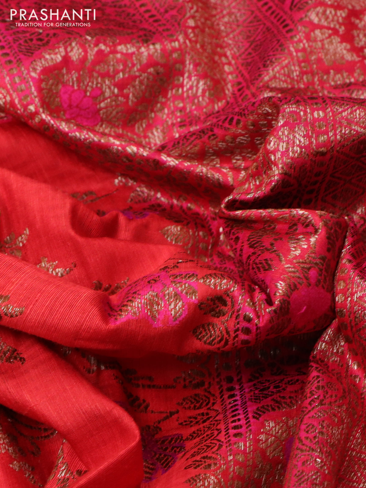 Banarasi dupion silk saree red and pink with allover thread & zari floral weaves and woven border