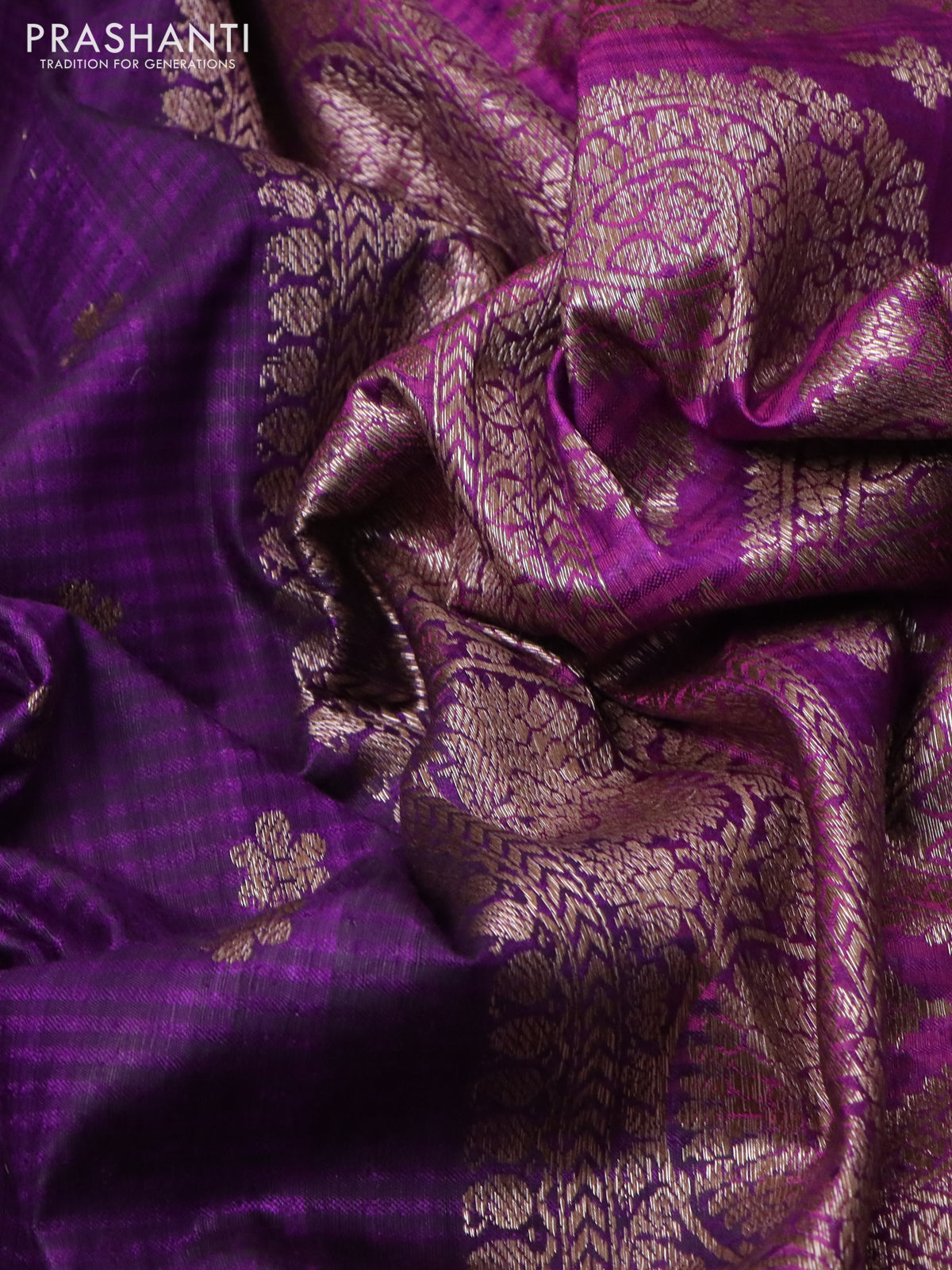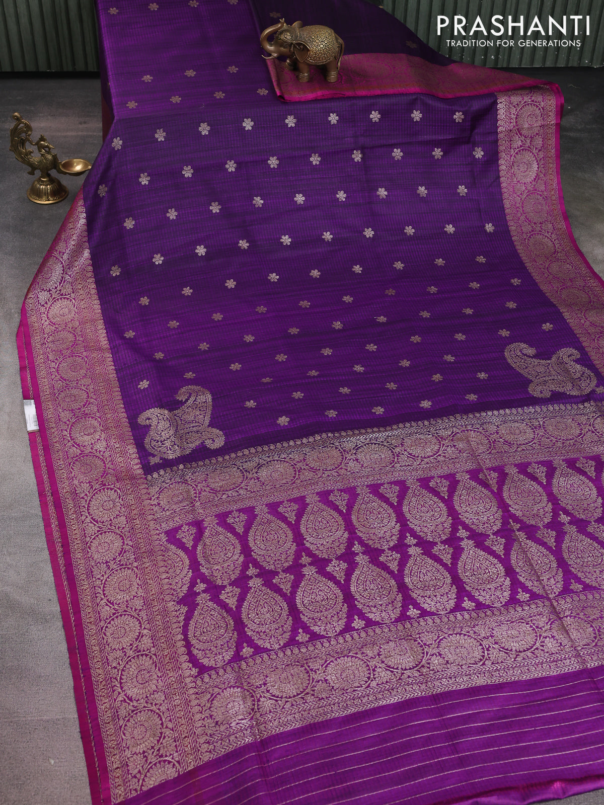 Banarasi dupion silk saree violet and purple with thread & zari woven buttas and woven border