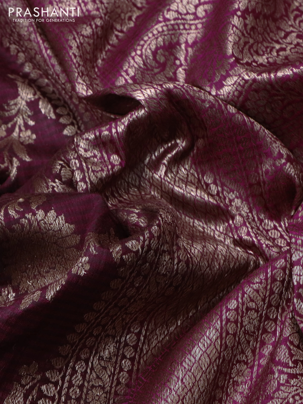 Banarasi dupion silk saree wine shade and magenta pink with allover thread & zari floral weaves and woven border