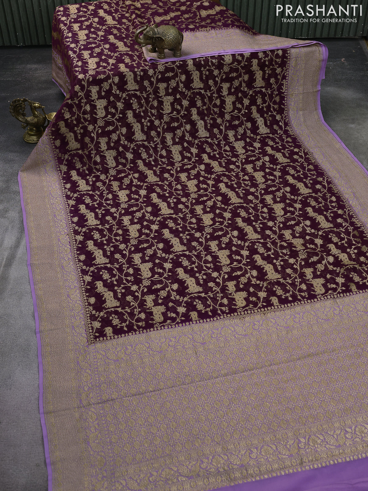 Banarasi georgette saree wine shade and lavender with allover thread & zari weaves and woven border
